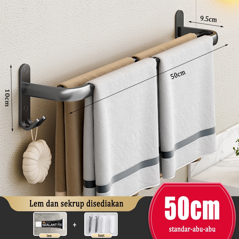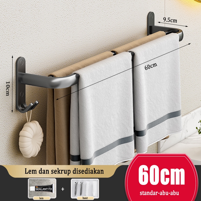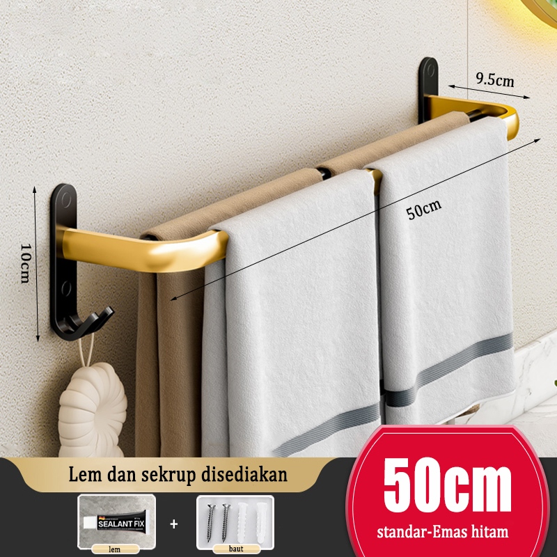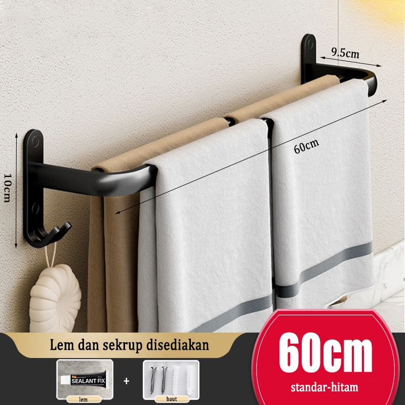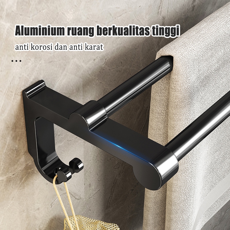 Rak penyimpanan kamar mandi rak handuk tahan air dan anti karat tanpa pengeboran dipasang di dinding