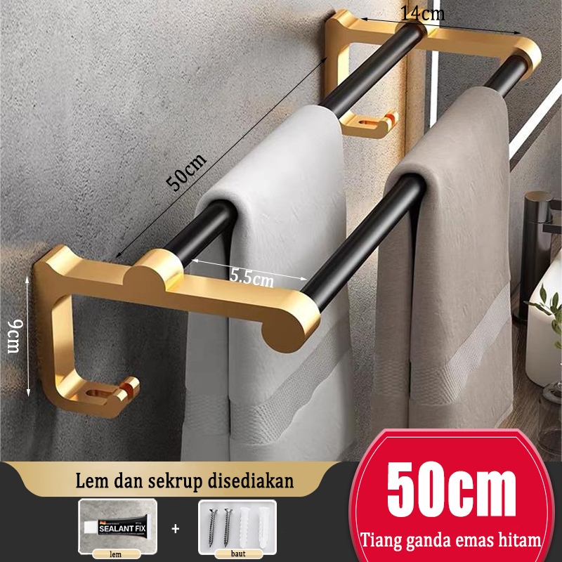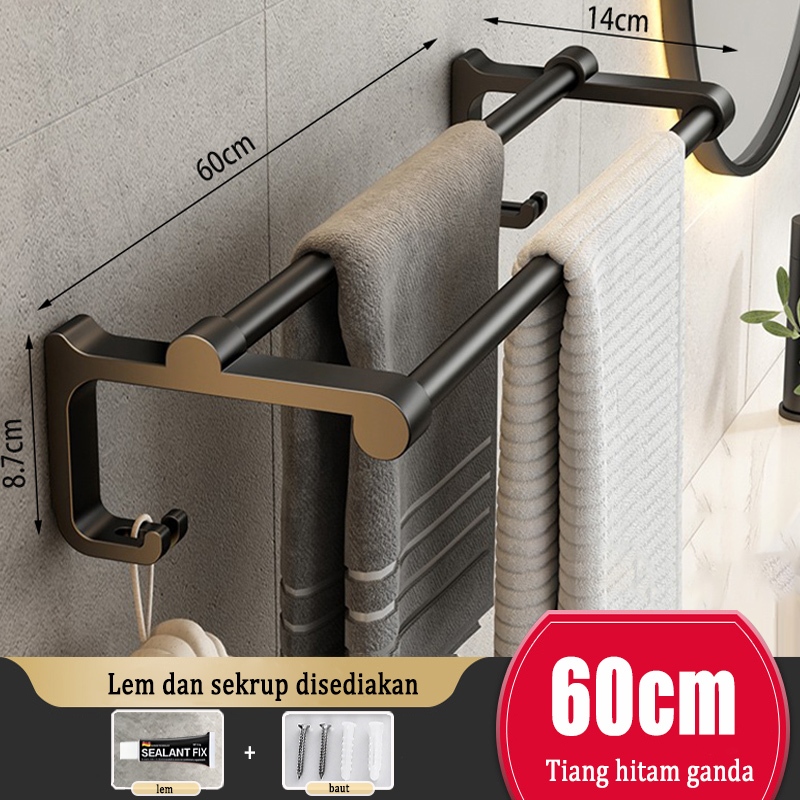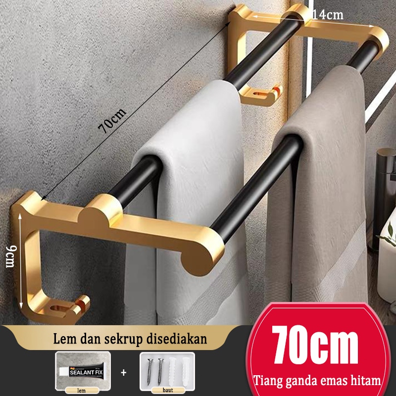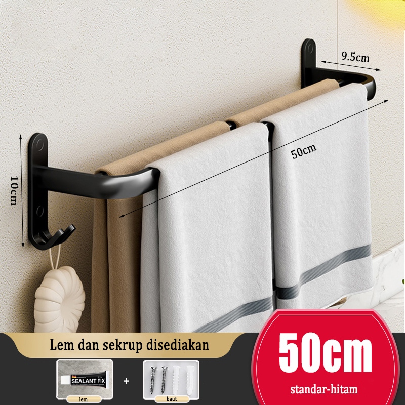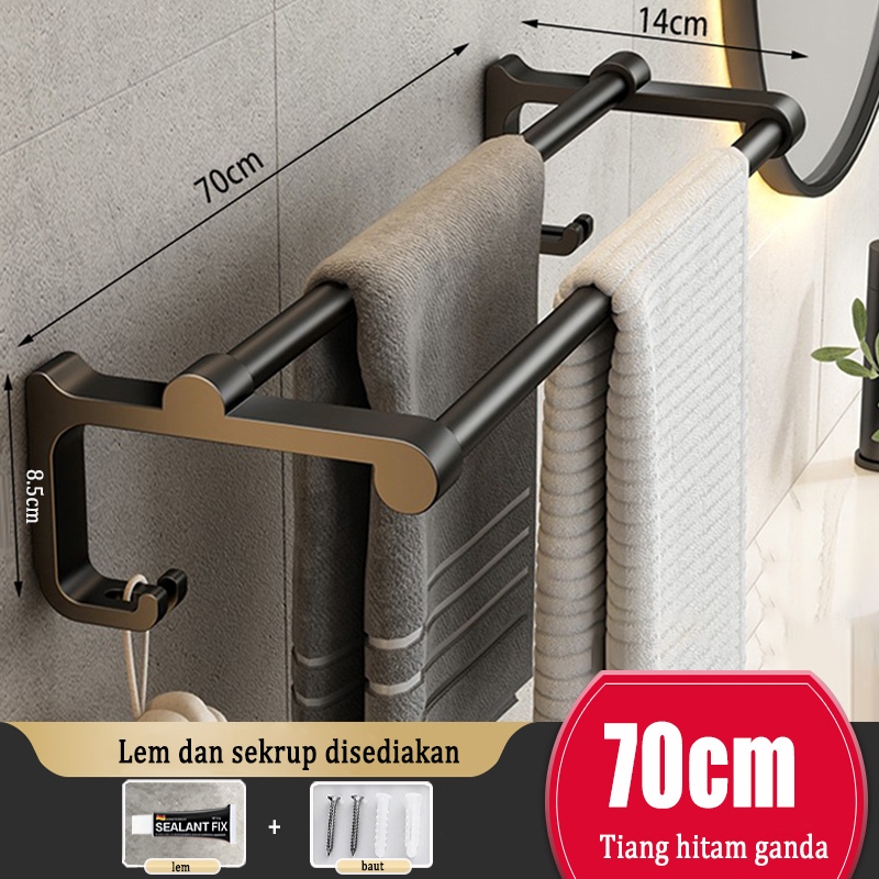 Rak penyimpanan kamar mandi rak handuk tahan air dan anti karat tanpa pengeboran dipasang di dinding
