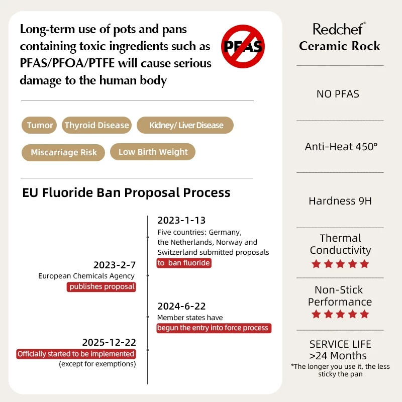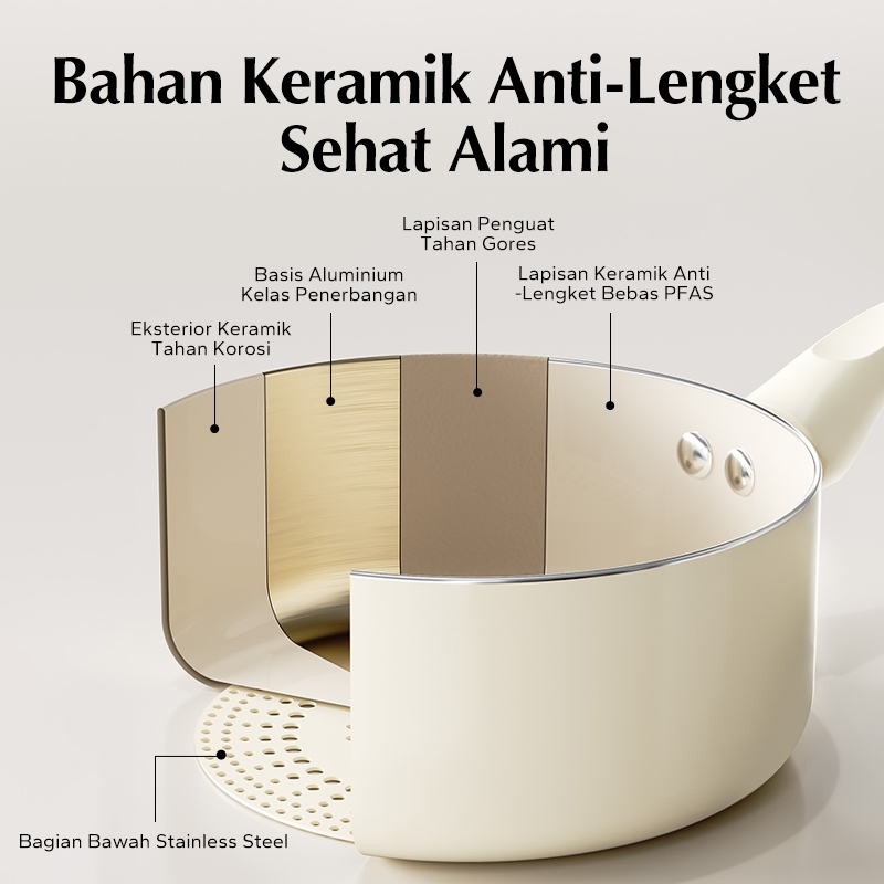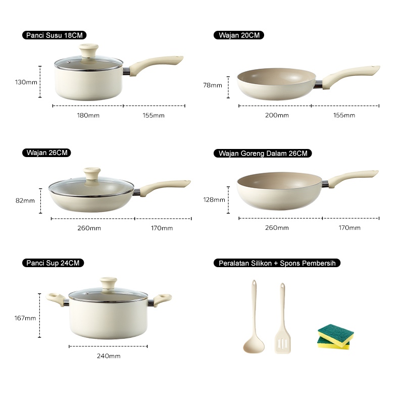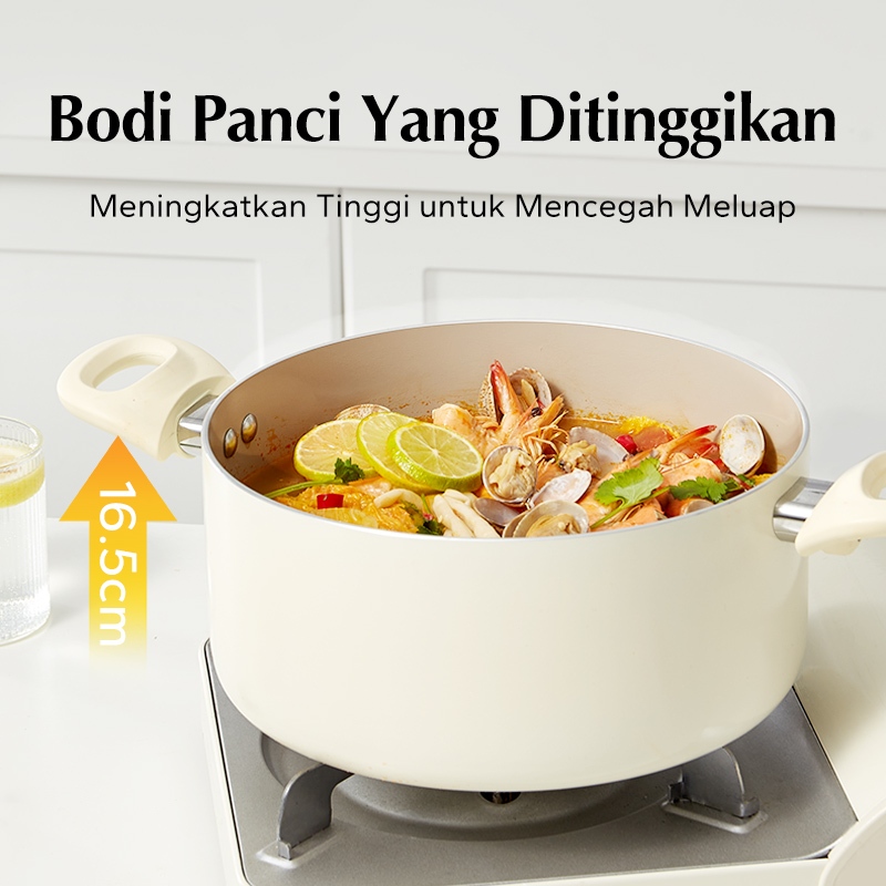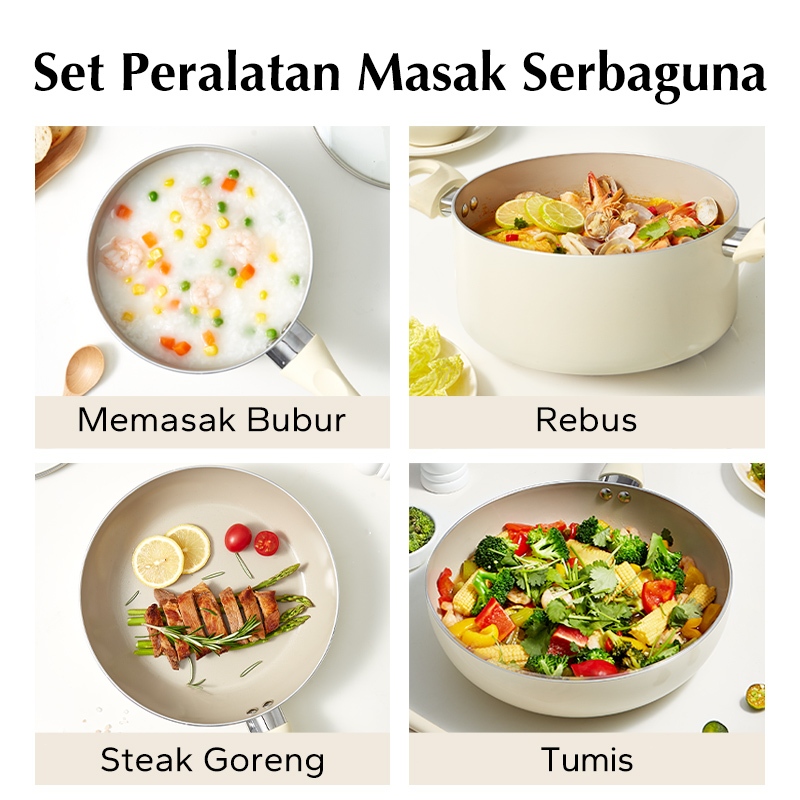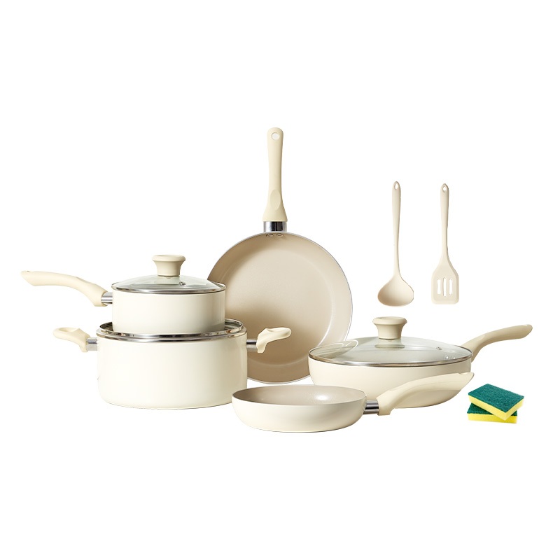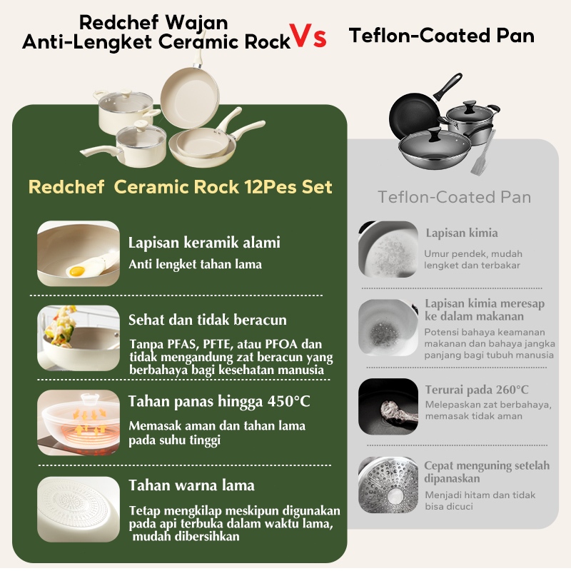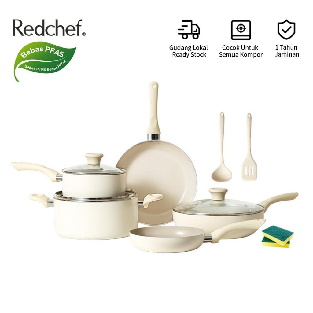 Redchef Set Peralatan Masak Anti Lengket Keramik Rock 12-Piece Bebas PFAS, PTFE, dan PFOA Cocok untuk Semua Kompor Wajan Penggorengan Panci Induksi Tutup Panci Rebus Peralatan Masak Keramik