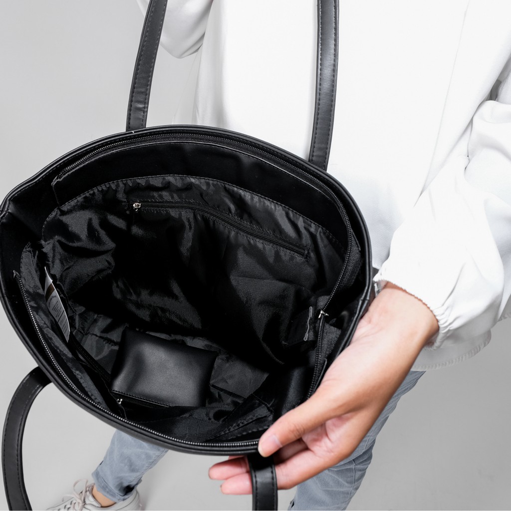 Pamole - Tote Bag Wanita Bahan Kulit Sintetis Penutup Resleting - Volen Series