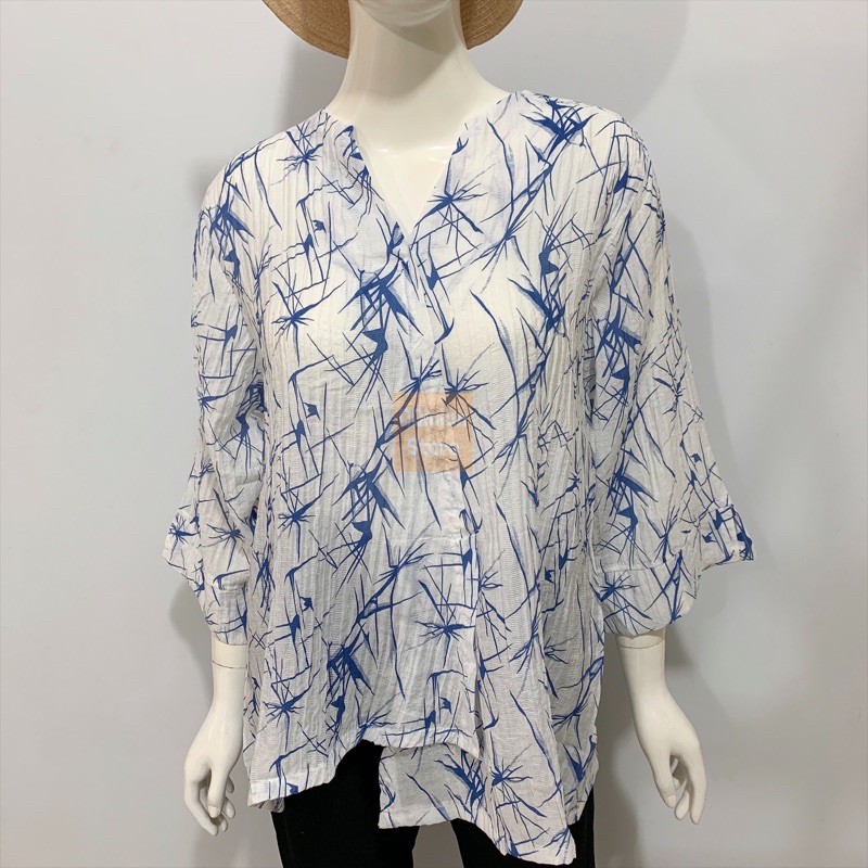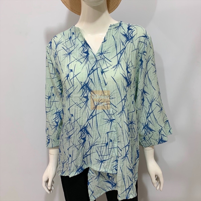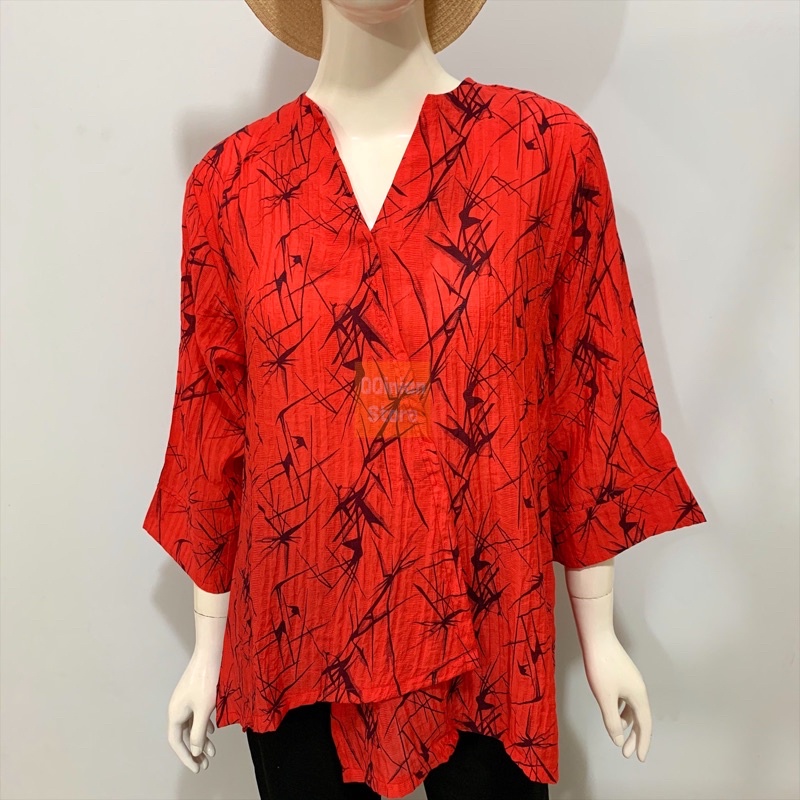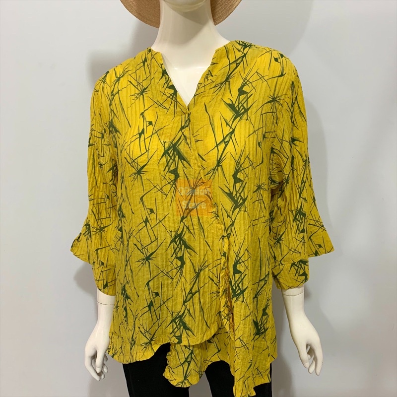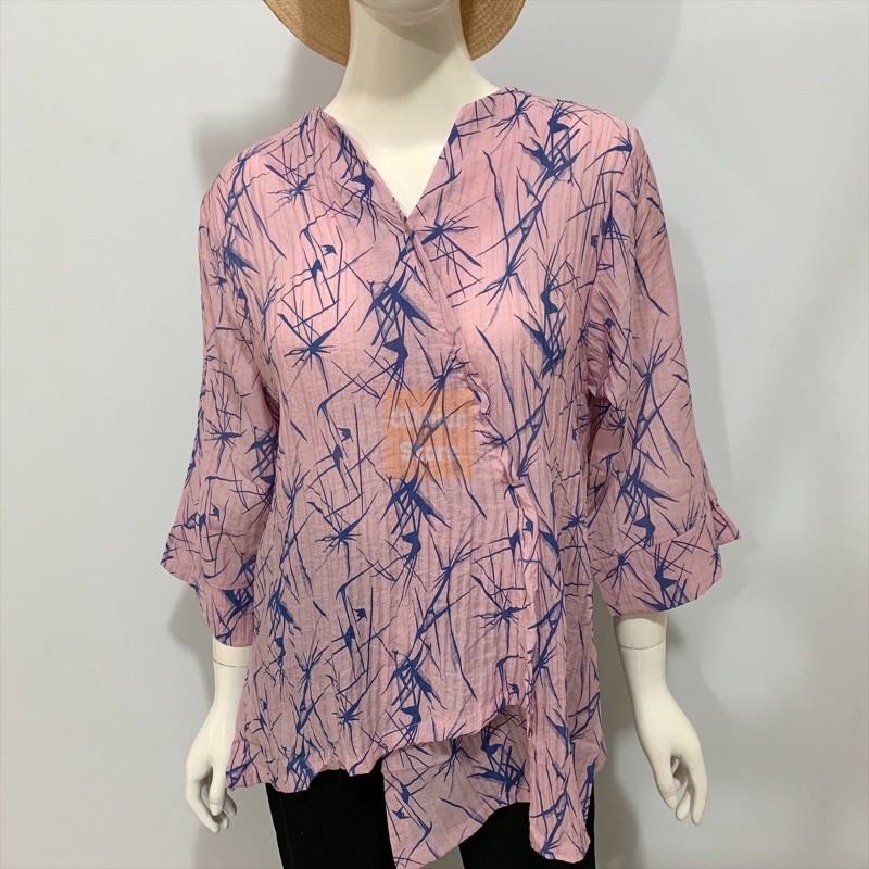 Blouse Fashion Nicole QQinian Katun Silk Plisket Kerut Hijau Pink Putih Kuning Merah Abstrak Grosir