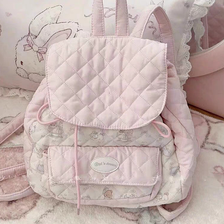 Tas Sekolah Lucu Wanita/ Tas Ransel Wanita Korea/Tas Bahu Backpack Ins Lucu Jepang/Tas Cantik Kekinian Merah Muda Backpack/Tas Ransel Korea Import Fashion/Warna Tabrakan Kekinian Backpack