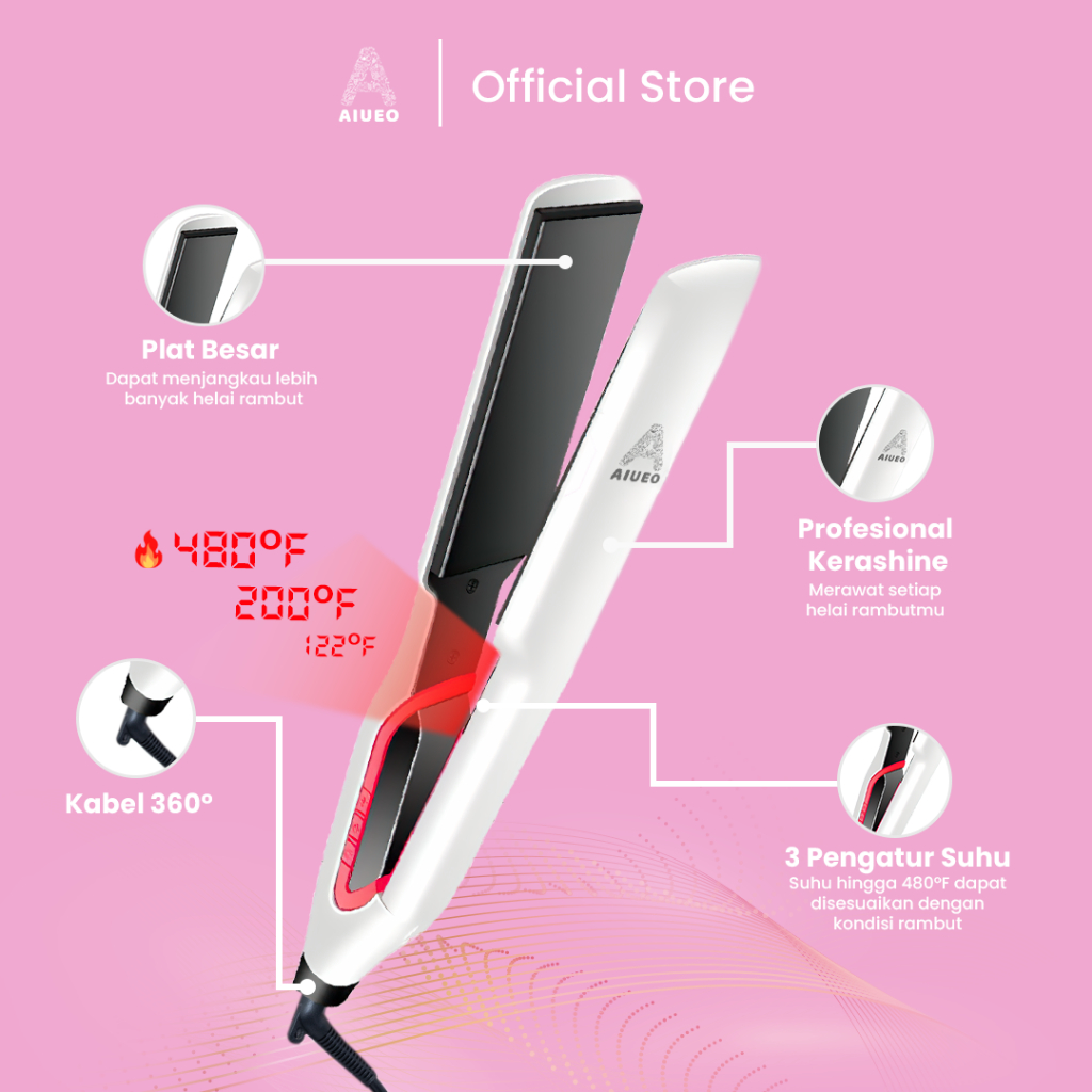 AIUEO Catokan Rambut 957 Celeb 1 • Catok Rambut Recommended Plat Besar Untuk Rambut Ikal Membandel Teknologi Profesional 3in1 - Hair Straightener - Curly - Blow