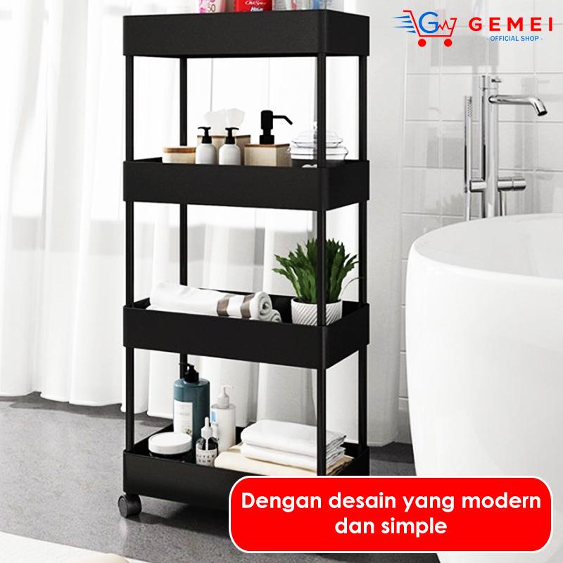 (Gemei) Rak Susun Serbaguna Bahan Plastik 4 Tingkat Dengan Roda Rak Kamar Mandi Bahan Plastik Portable Rak Dapur Square