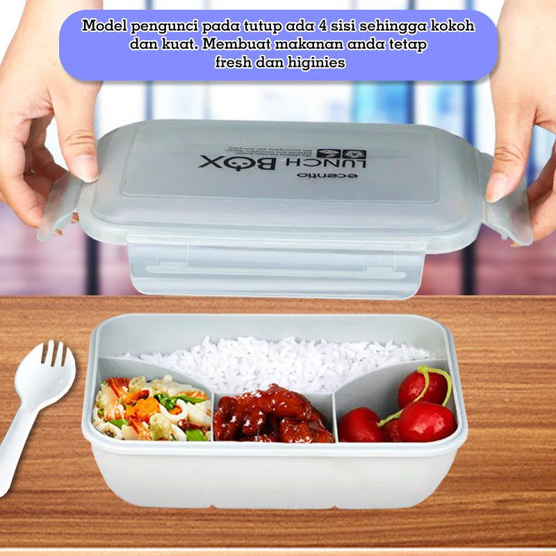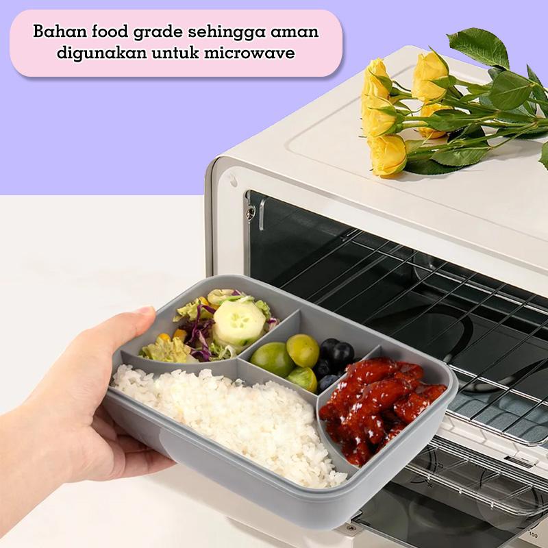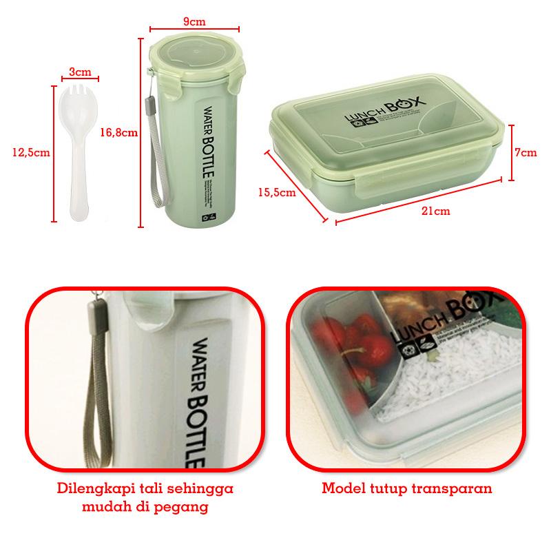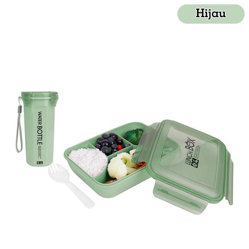 (Gemei) Lunch Box 1 Set 1100ml Free Botol minum 500 ml Kotak Bekal Makan 4 Sekat Tempat Makan Anti Bocor