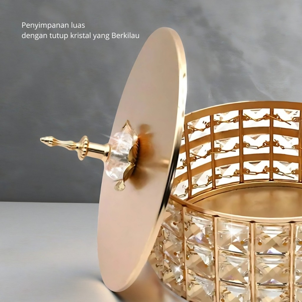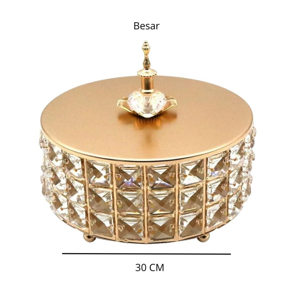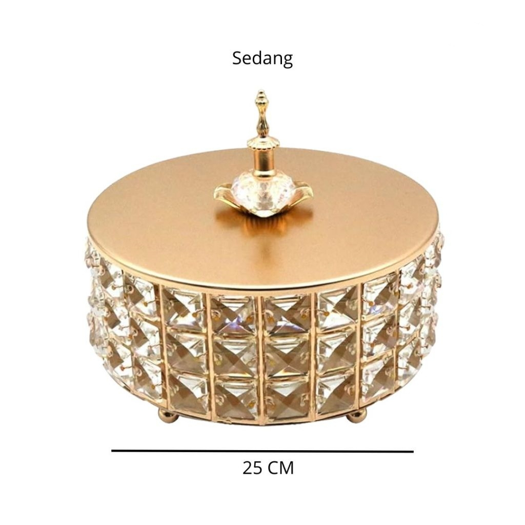 Toples Kristal Metal Lebaran Set Mewah - Wadah Permen & Kue Kering, Dekorasi Ruang Tamu Elegan, Ready Stock Kirim Cepat