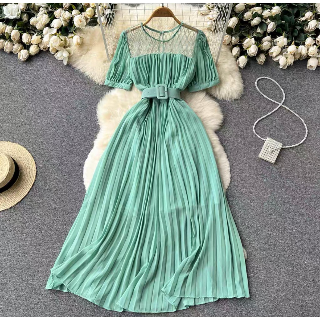 DARLA - Moana Dress / Pleated Dress with belt/ Party Gown