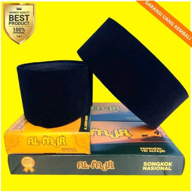 Peci Songkok Kopiah Polos Nasional AL Fajr Tinggi 9 Dewasa Anak No. 5-9 Warna Hitam