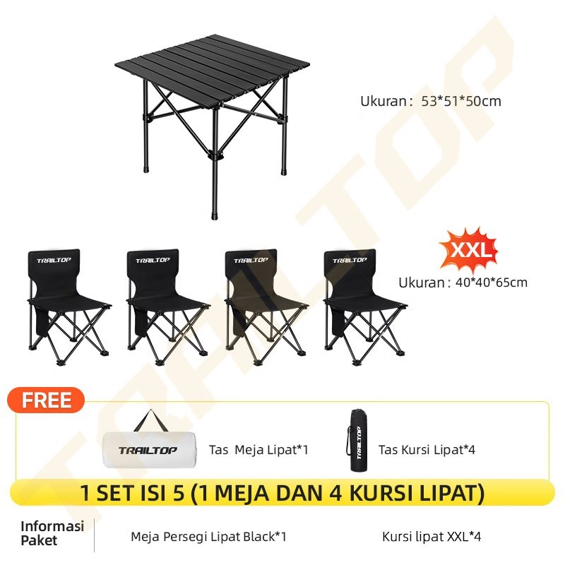 TrailTop Meja Kursi Lipat Outdoor 1 Set Beban 150KG Meja Lipat Portable Baja Karbon Kuat Tahan Lama
