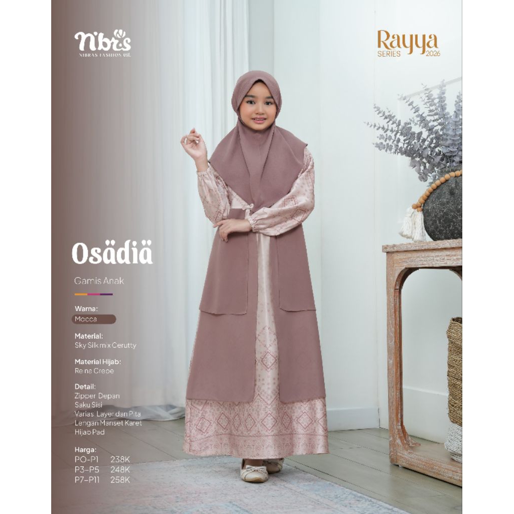 SARIMBIT NIBRAS RAYYA SERIES OSADIA MOCCA 2026/SARIMBIT LEBARAN/SARIMBIT KELUARGA/GAMIS DAN KOKO
