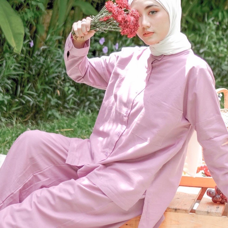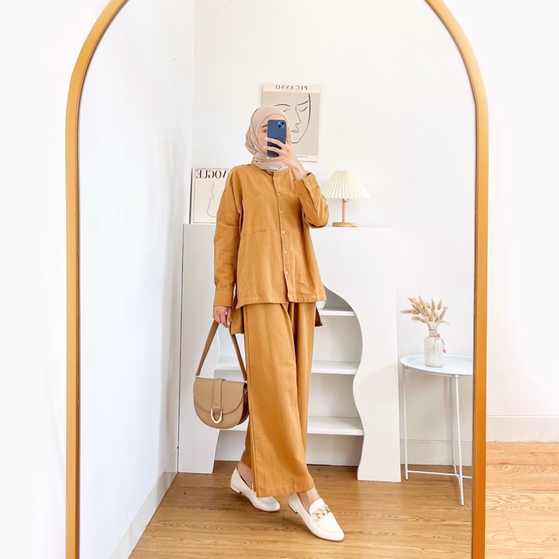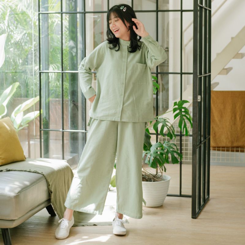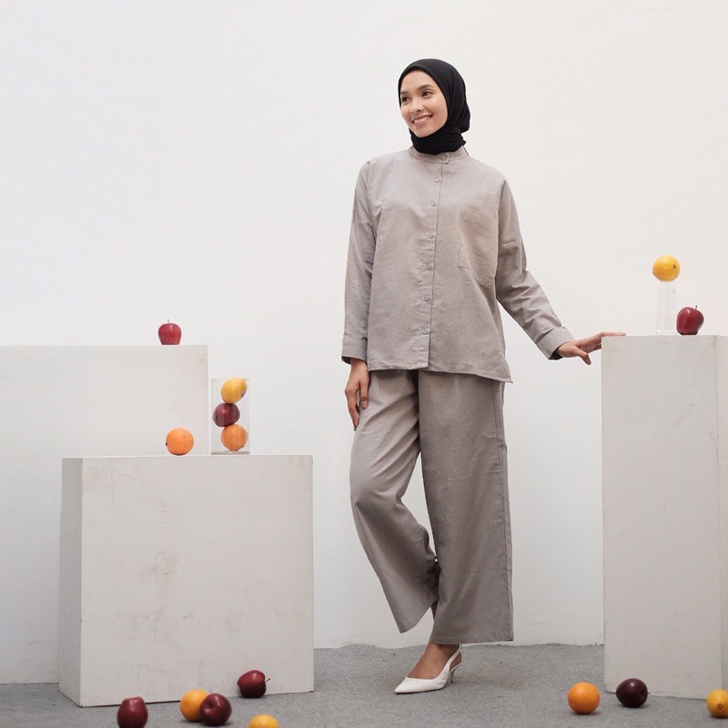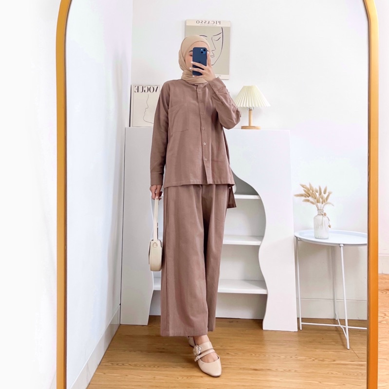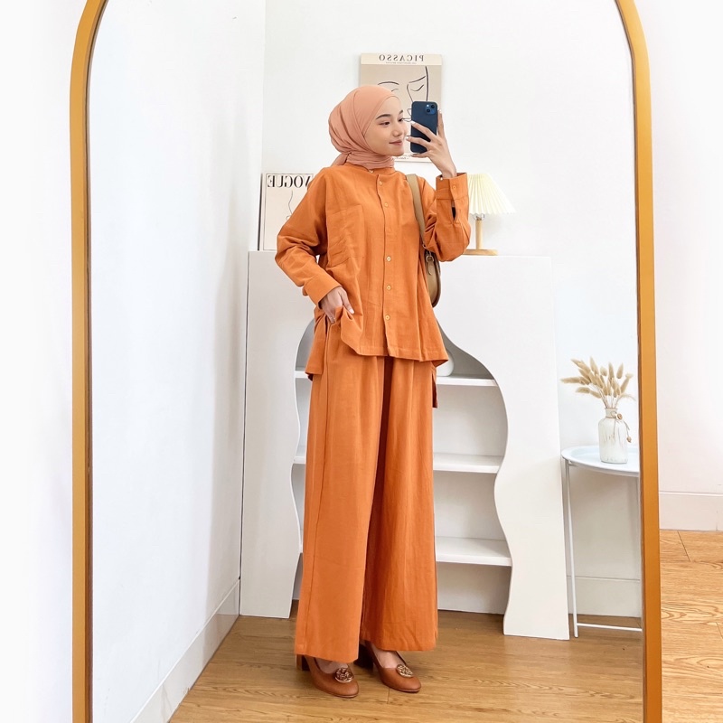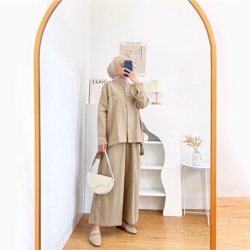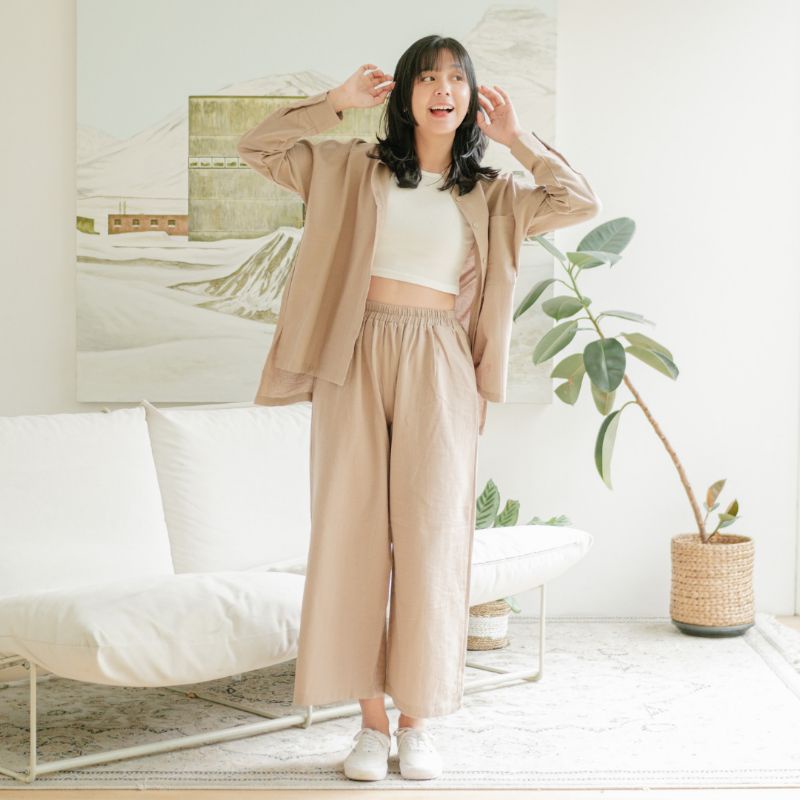 Sugi Label - Plain Set One Set Setelan Kulot Linen HQ