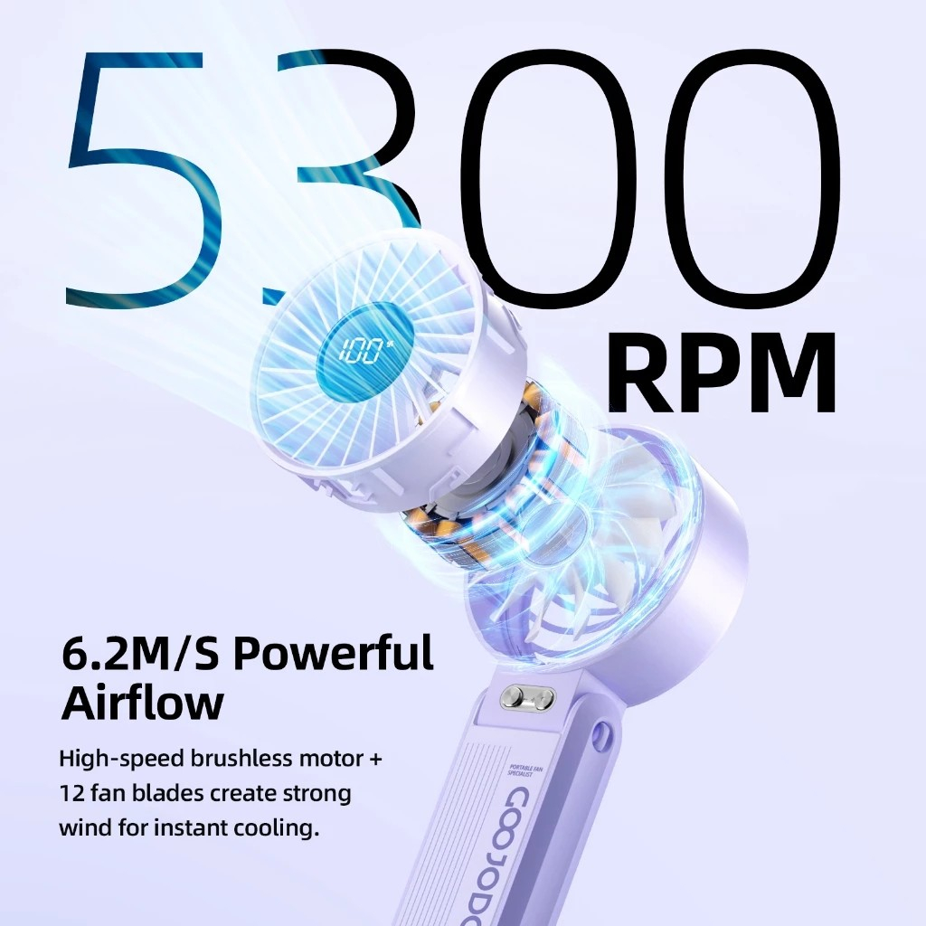 GOOJODOQ GFS014 Folding Mini Fan 4000 MAH With Smart LED Screen Display 100 Level Speed - Kipas Mini / Kipas Angin Portable