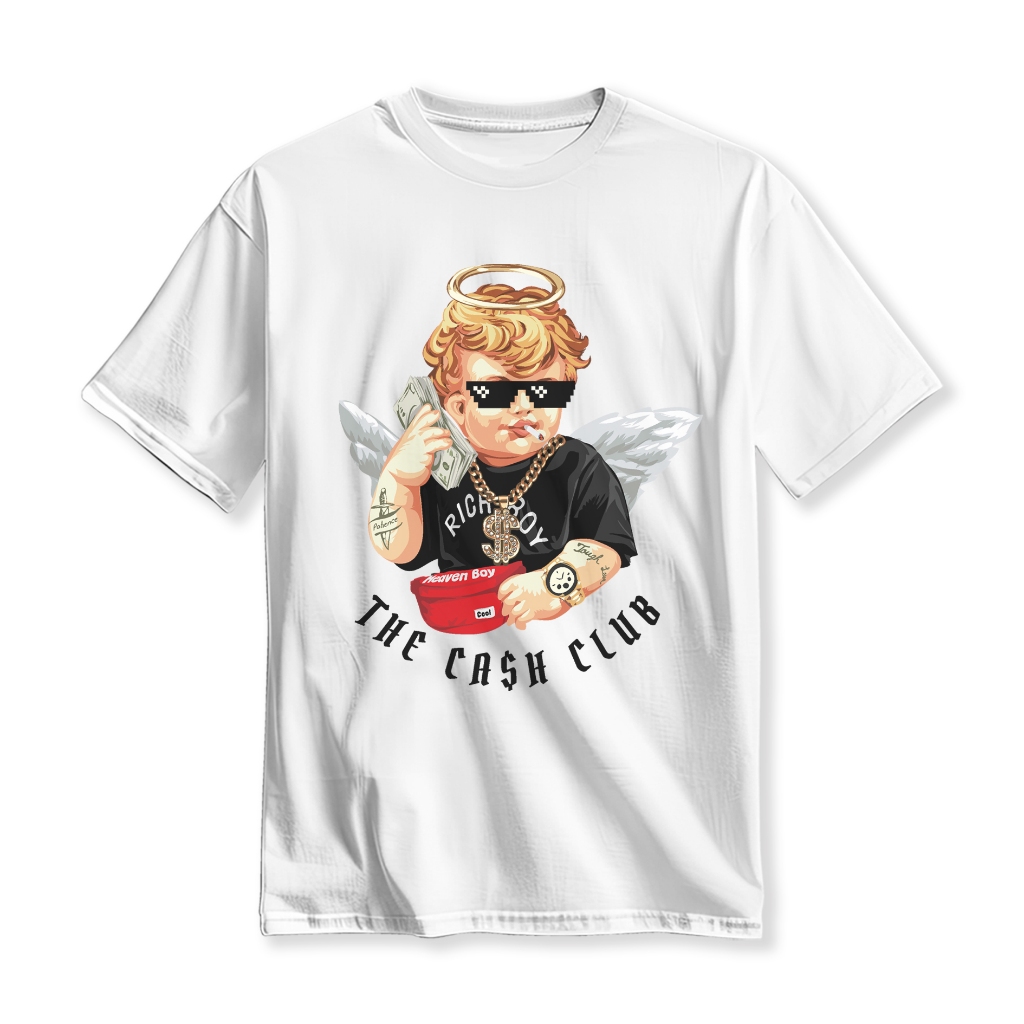 LuckZONE T-Shirt | Kaos Atasan Pria | RICH BOY THE CASH CLUB | Cotton Combed 30s