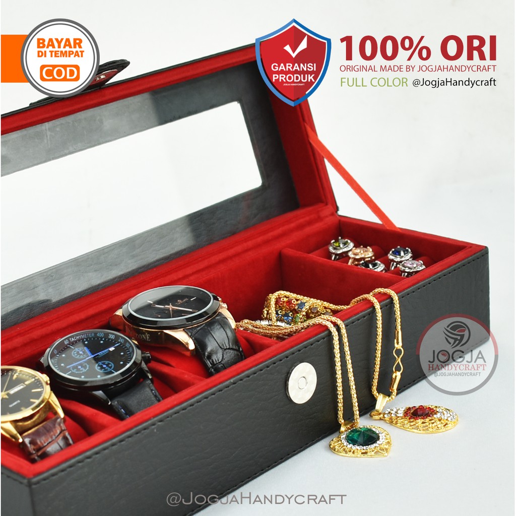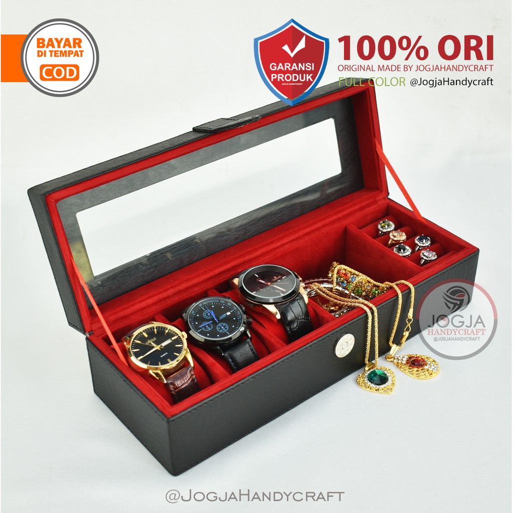Black Red Box Tempat Jam Tangan isi 3 + Tempat Perhiasan & Aksesoris