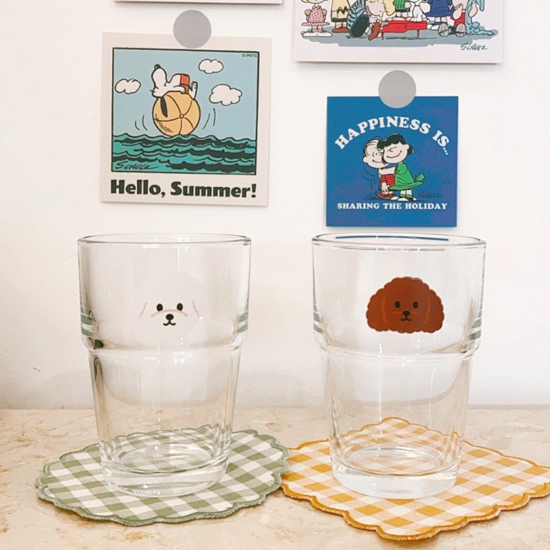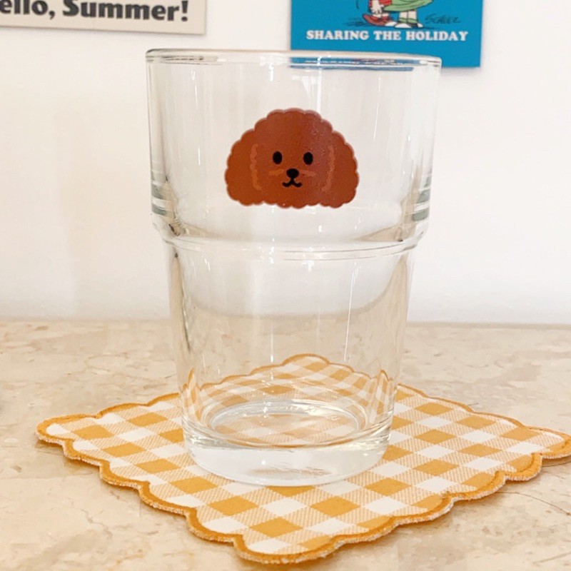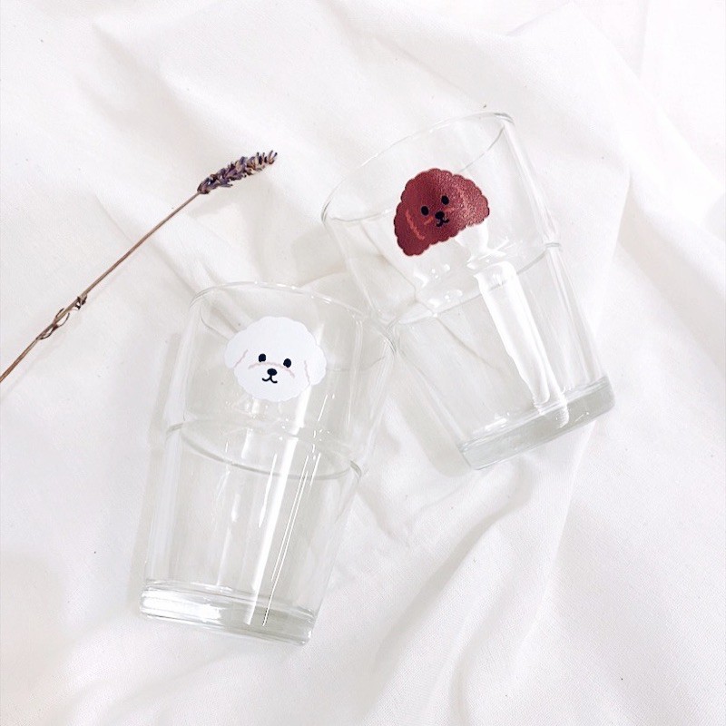 Cangkir Gelas Kaca Aesthetic Korea | Home Cafe Glass Susu Jus Transparan Lucu Dog Poodle Bichon Cute