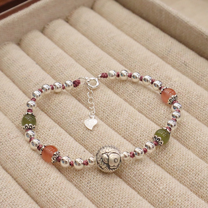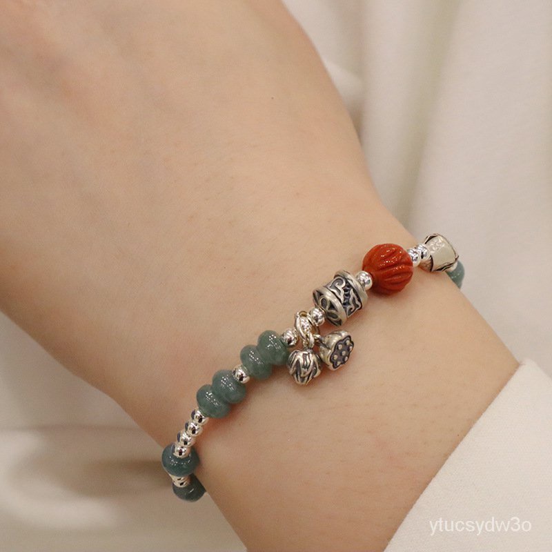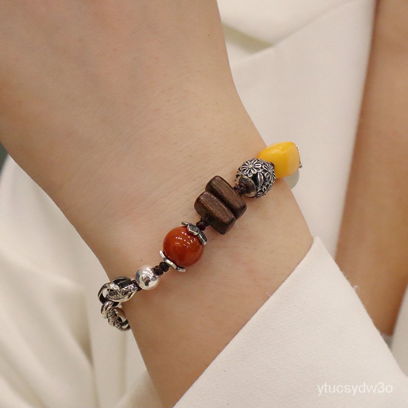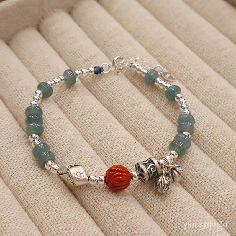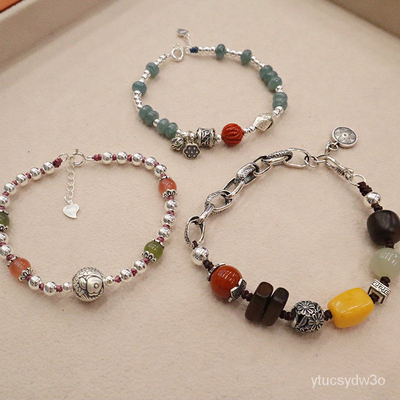 Gaya Cina Baru925Gelang Perak Murni Mode Retro Kualitas Tinggi Gelang Perak Batu Alam Kayu Elang Alami Semua Cocok