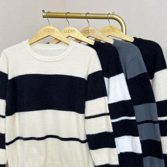 Murah Coovi Eggy Top Stripe Long Sleeve Knit - Atasan Wanita Lengan Panjang Knitwear