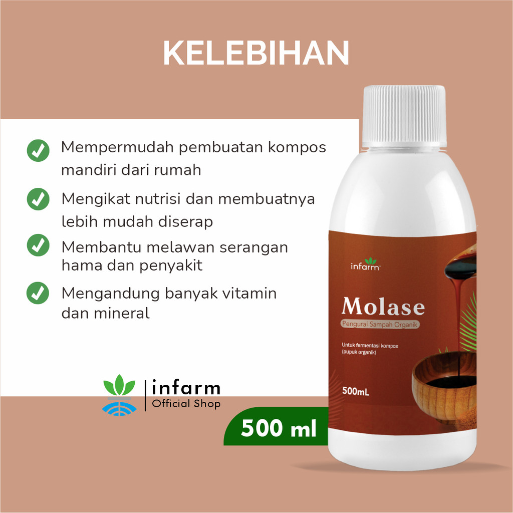 INFARM - Molase Tetes Tebu Murni Pengurai Sampah Organik 500 mL, Molase Organik Cair Pupuk Molase Fermentasi Menyuburkan Tanah Membantu Pertumbuhan Mikroba Tanah Pupuk Fermentasi Cocok untuk Hidroponik dan Kebun Pupuk Molase Murni Kualitas Premium
