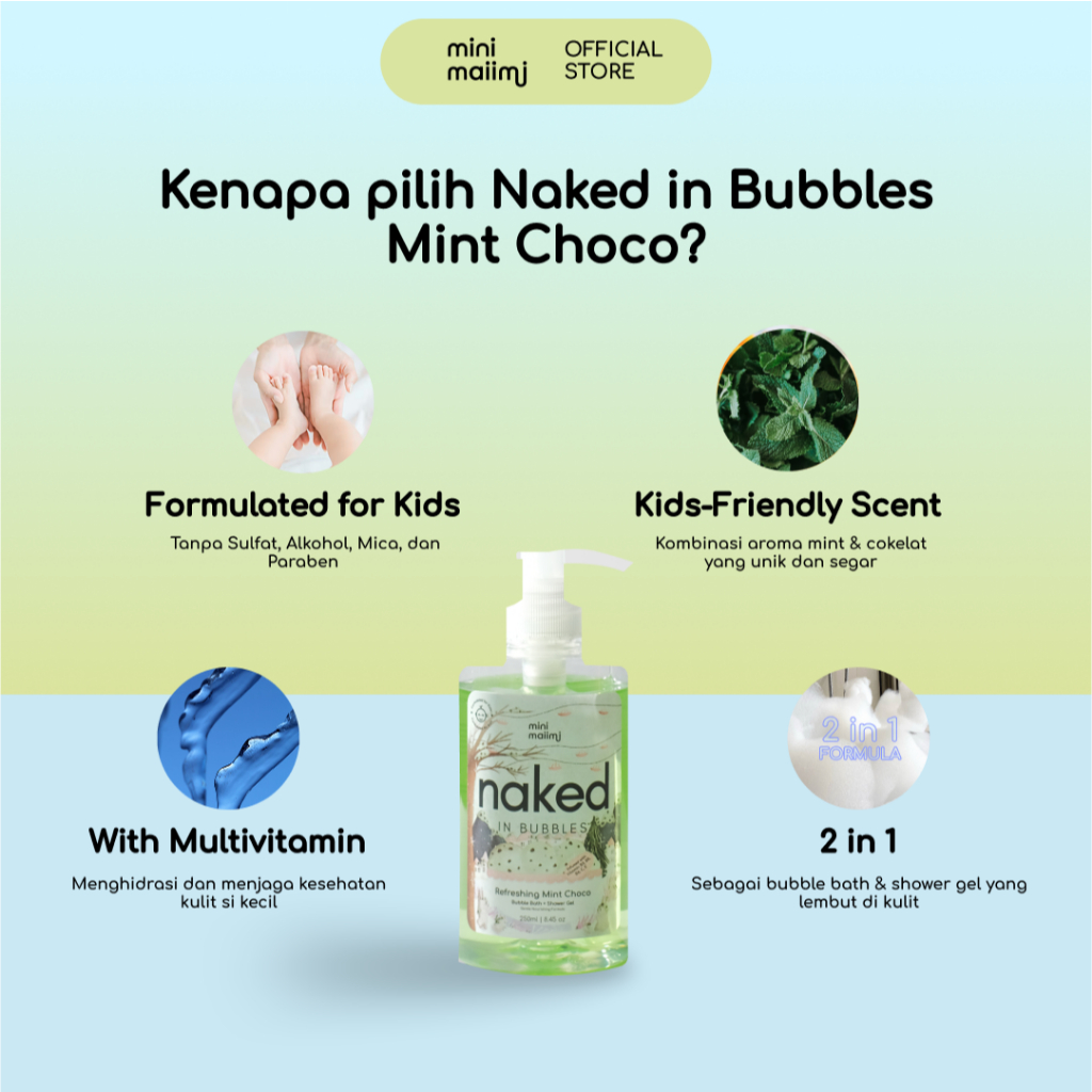 Mini Maiimi - Naked In Bubbles Kids: Refreshing Mint Choco | Bubble Bath | Sabun Busa