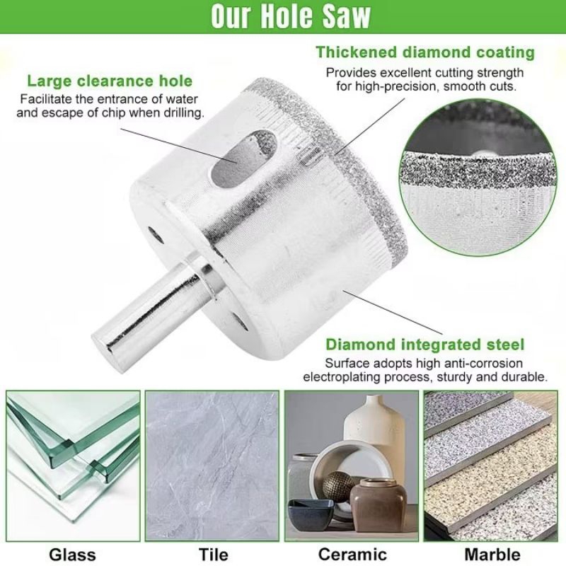 SET 10 PCS Mata Bor Kaca Intan Diamond Hole Saw Cutter Pelubang Pembolong Kaca Keramik Batu Marmer Granit Drill Bit