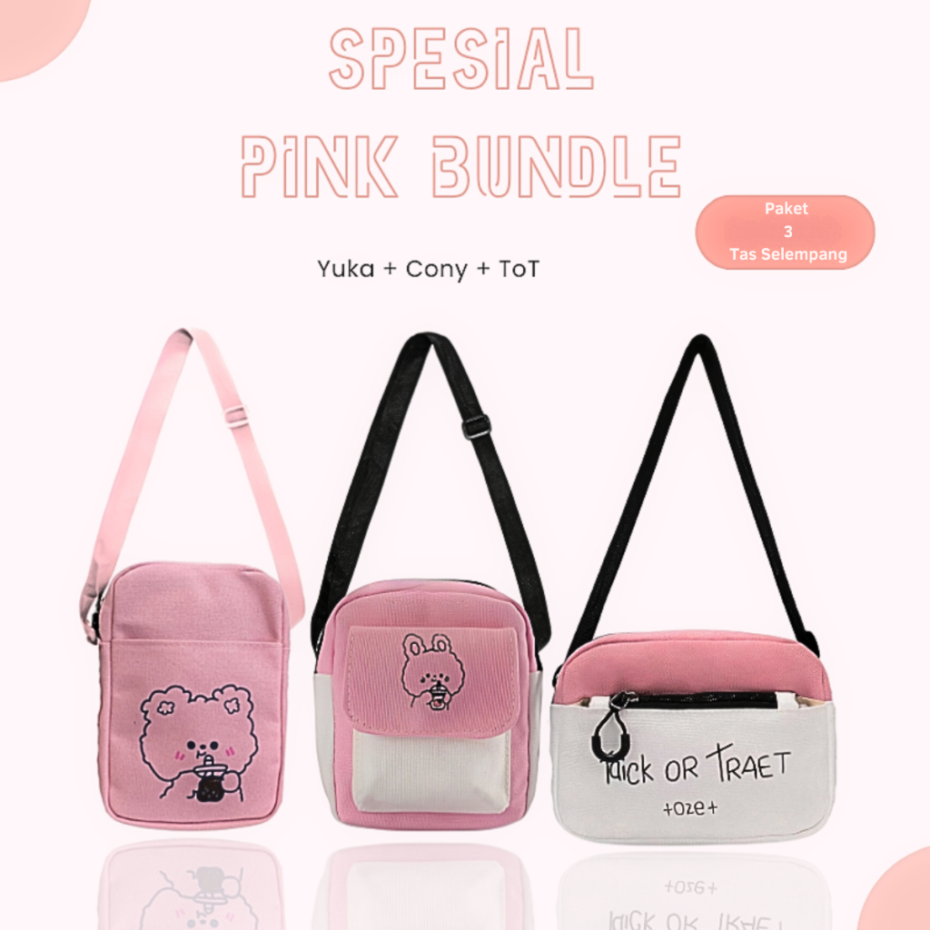 Spesial Pink Bundling Tas Selempang & Bahu Wanita Paket Bundle Dapat 3