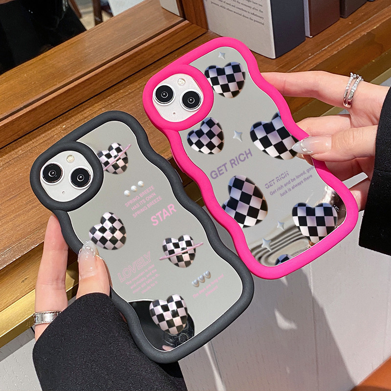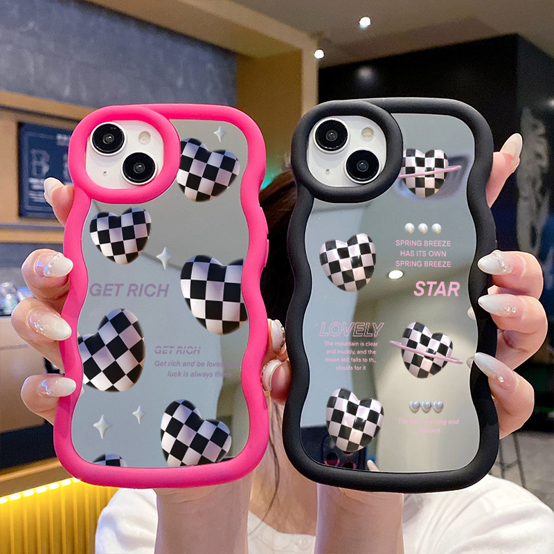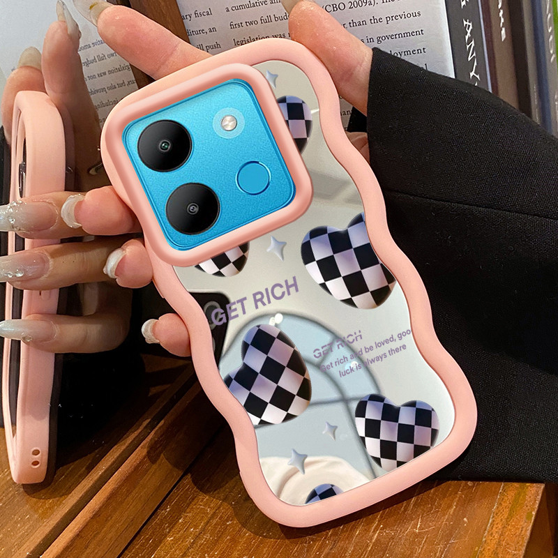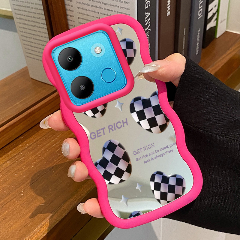 Casing HP Untuk Infinix Smart 7 Case Hati dua warna hitam dan putih Macaron Softcase Silikon lunak Kasing Kesing cermin Cesing telepon