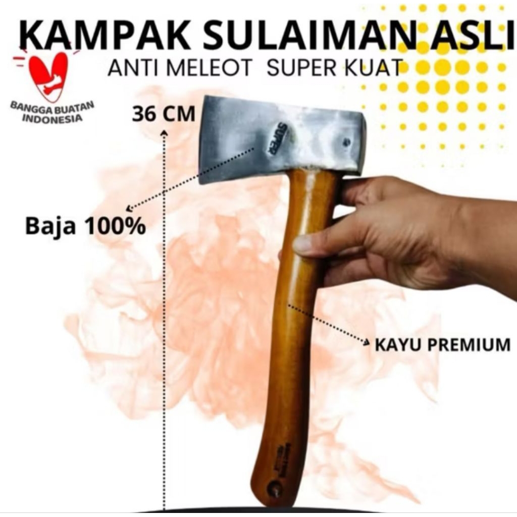 Kampak Sulaiman Asli 36cm Baja 100% Anti Meleot – Kapak Kayu Premium Super Kuat Tahan Lama