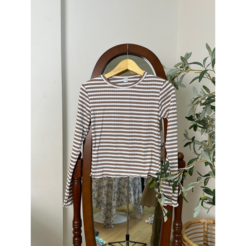 Sixstyle Meline - Ripped Knit Crop Tee Stripe Lengan Panjang Iner Long Sleeve