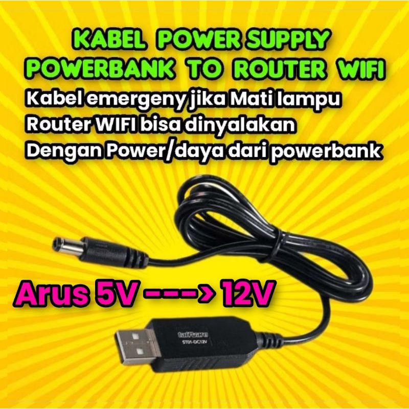 Kabel USB power UDC 5V to DC 12V dari powerbank 5 volt ke Router WIFI 12 volt