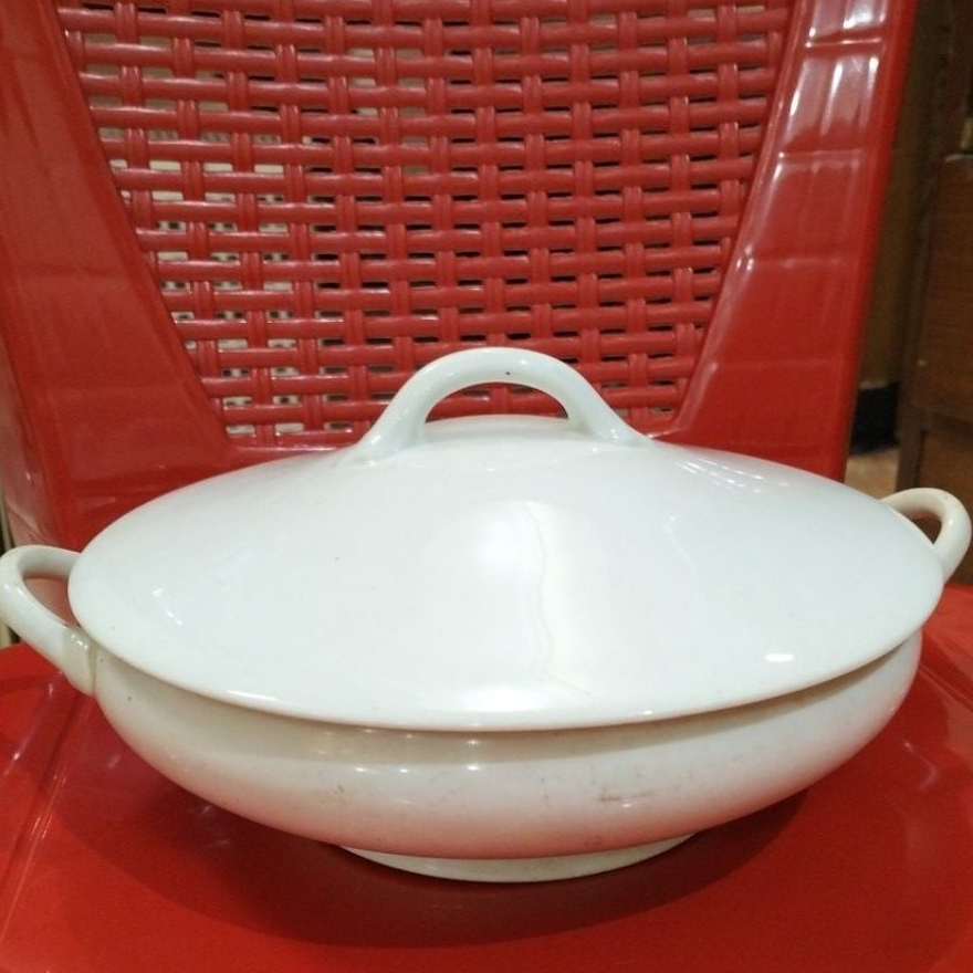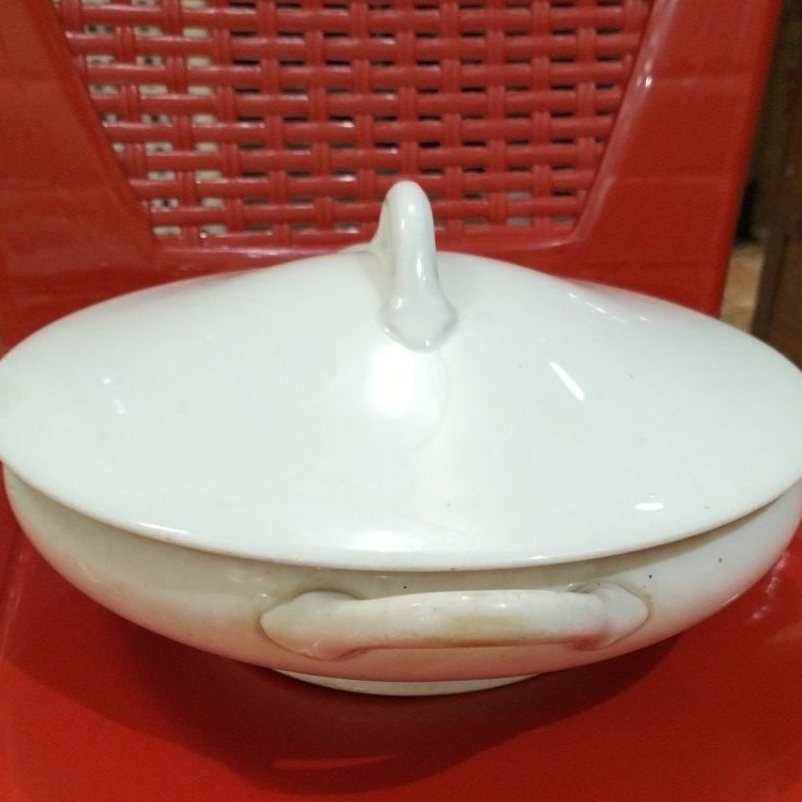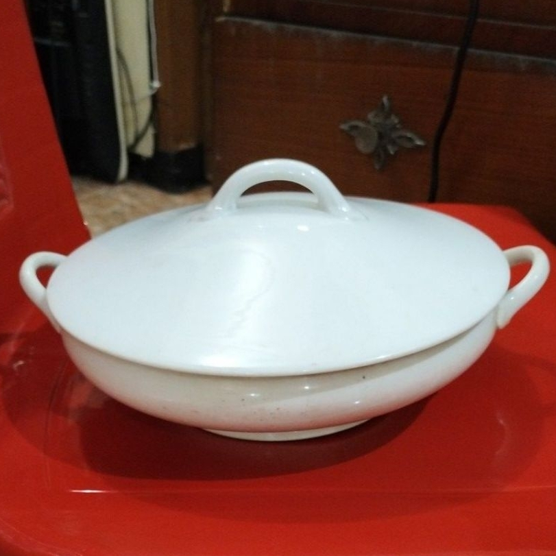 mangkok porselen keramik dengan tutup antik jadul