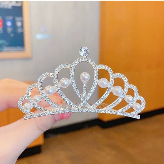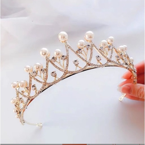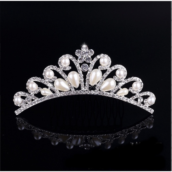Mahkota Tiara Mutiara Mewah Gaya Vintage untuk Aksesoris Rambut Wanita