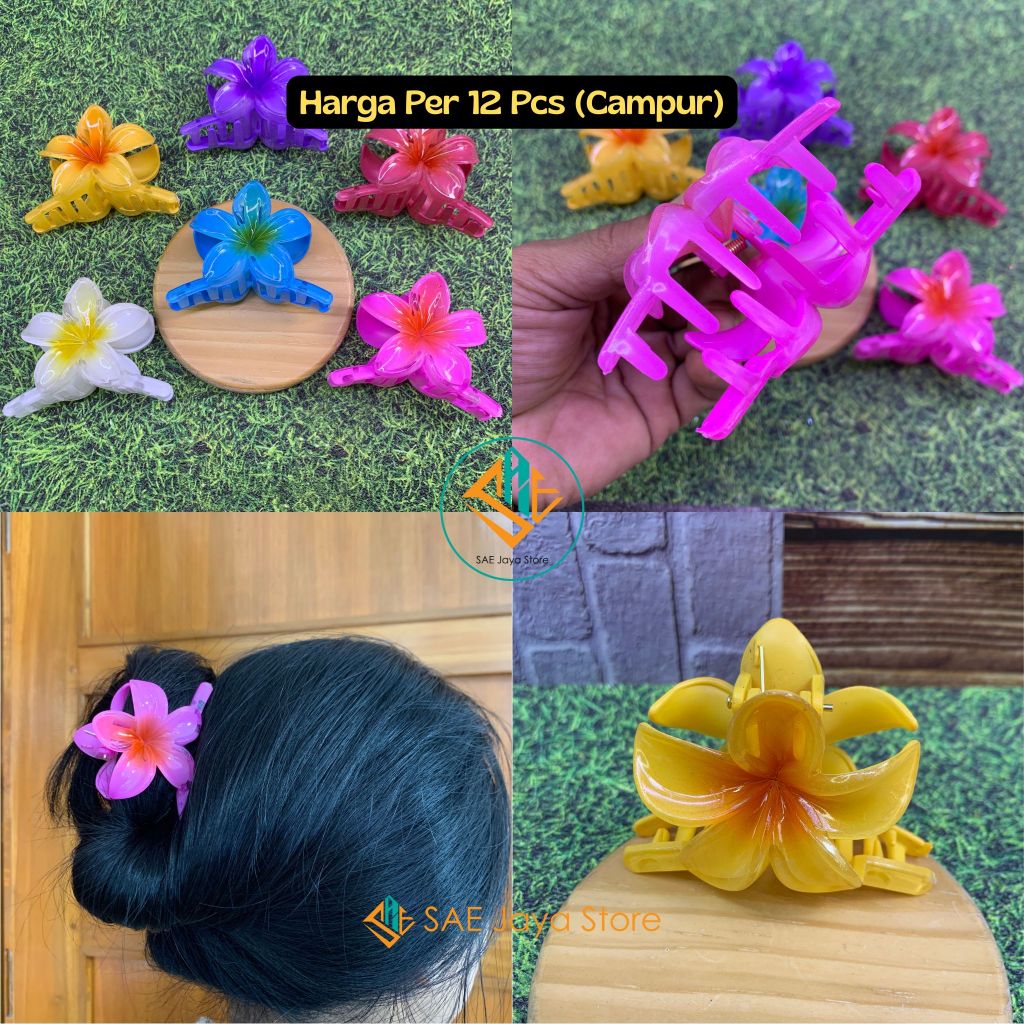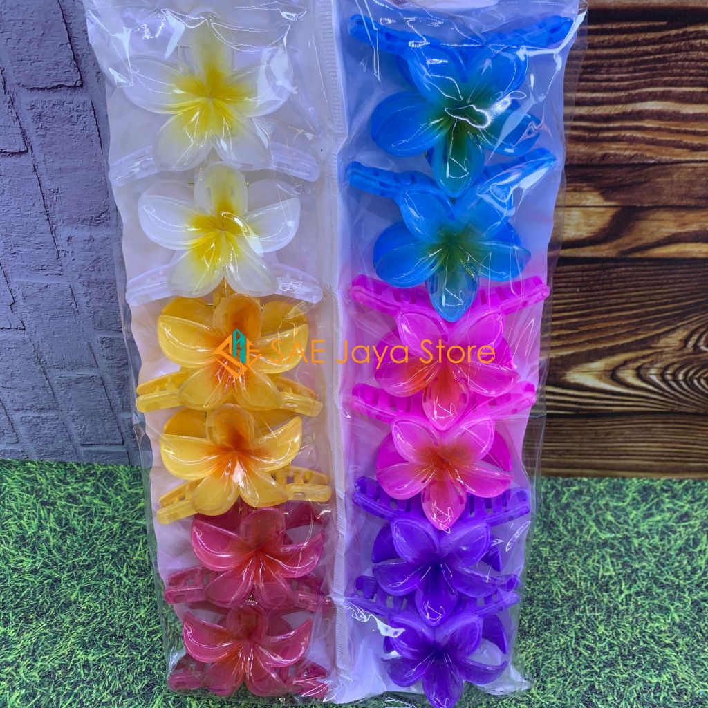 (12 PCS) SAE - JEPIT RAMBUT SALON BUNGA KAMBOJA UKURAN 7 CM PILIH WARNA / JEDAI SALON BUNGA KAMBOJA