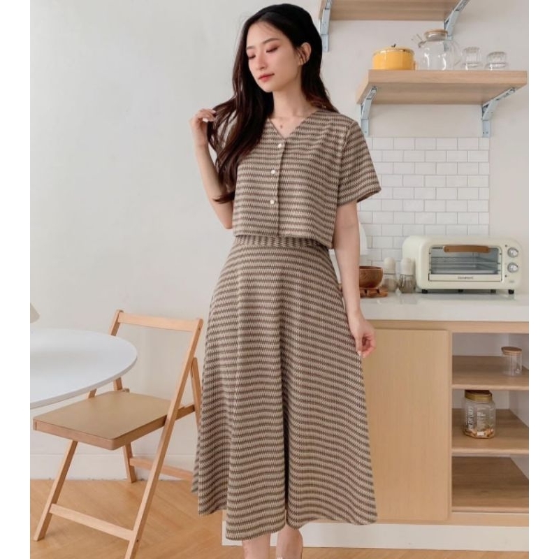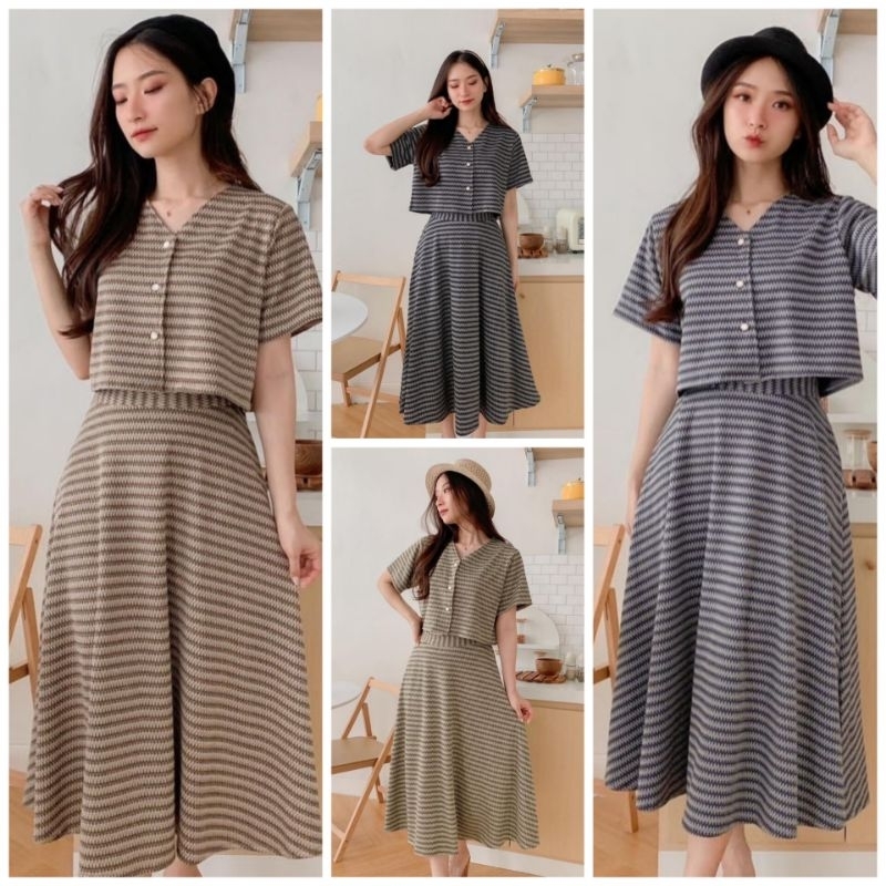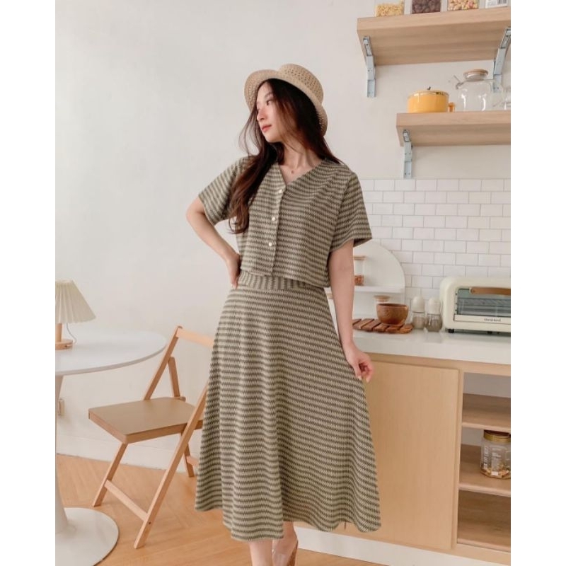 f1682 set wanita / setelan knit rajut import blouse tangan pendek dan rok / baju set natal