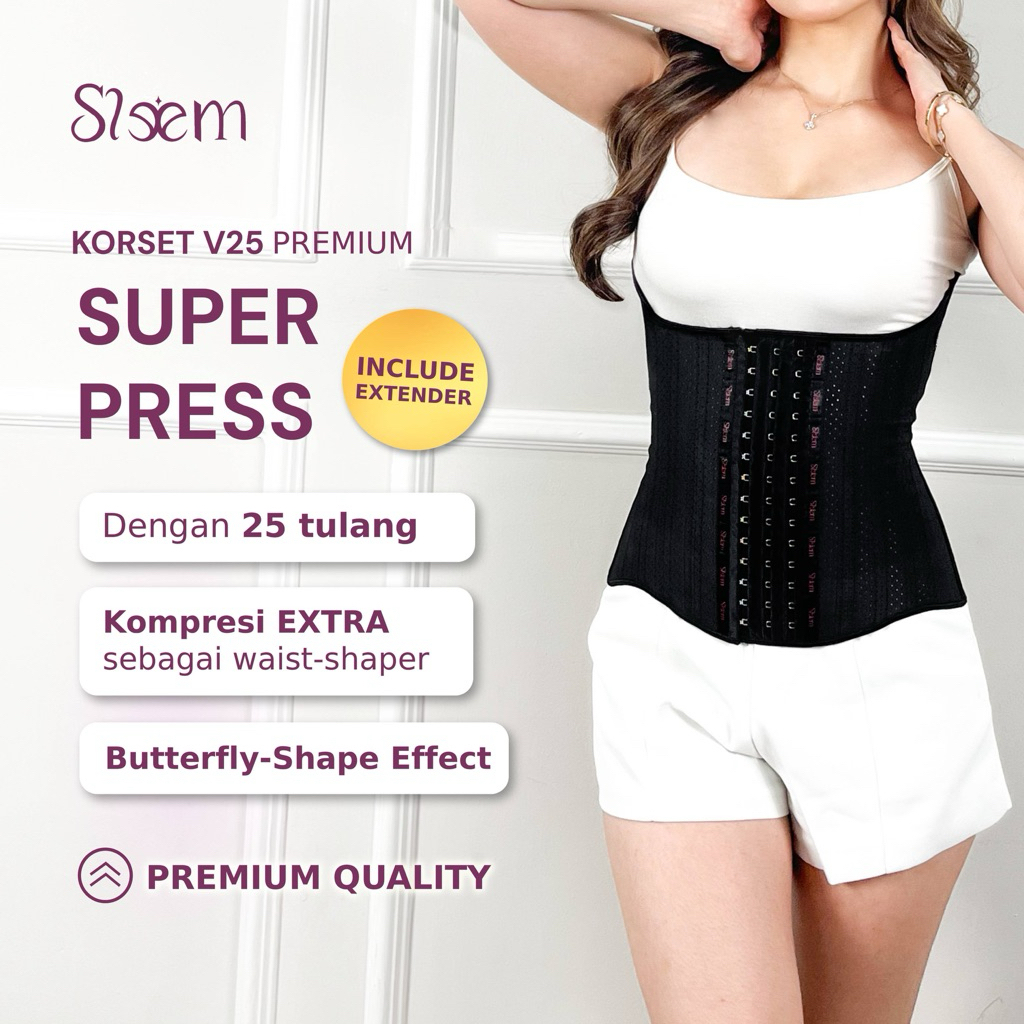 [SLEEM.inc] KORSET V25 LATEX SUPER PRESS 25 TULANG + Extender CORSET PELANGSING WANITA LATEX PREMIUM 25 TULANG