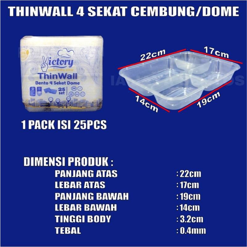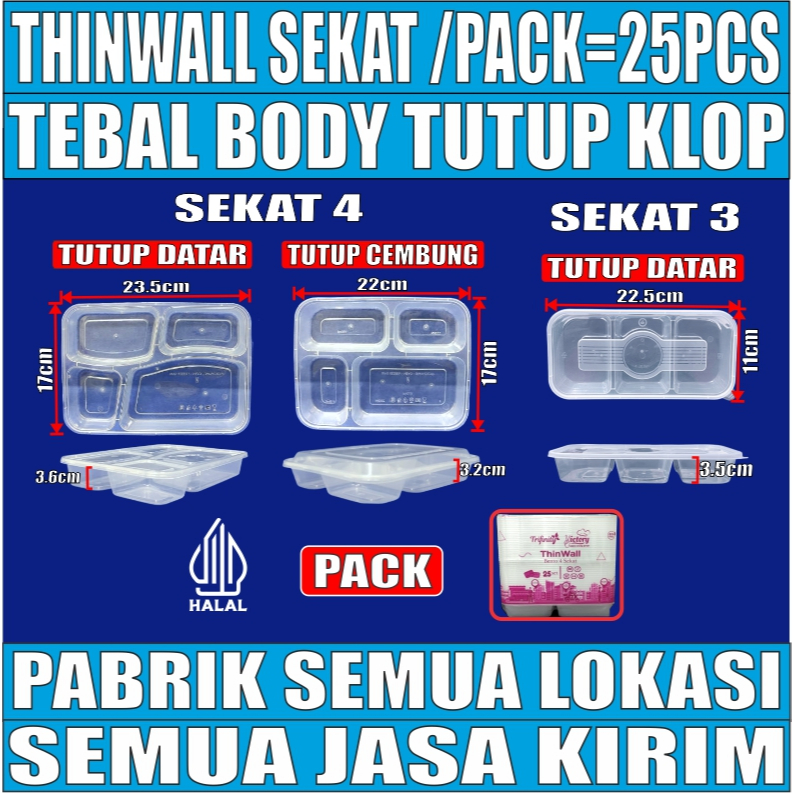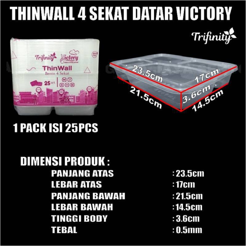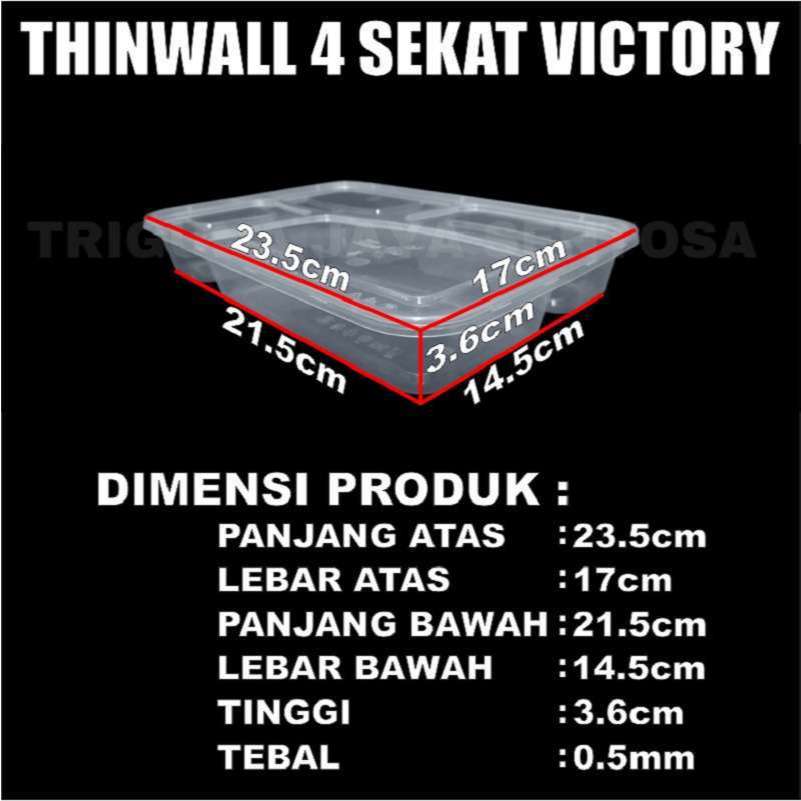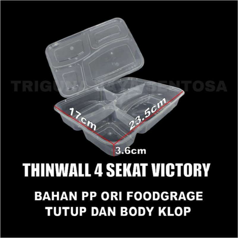 Thinwall 4Sekat Tebal 40gr Tutup Datar n 4 Sekat Cembung Victory n 3Sekat RL3 Long Klir Pack JSP