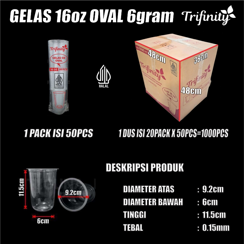 Gelas Oz HALAL Oval Tebal 8gr 12oz 14oz 16oz 18oz 22oz Datar Rata /Pack Cup Trifinity JSP