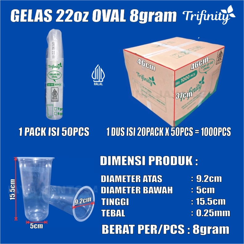 Gelas oz HALAL Oval Tebal 8gr 12oz 14oz 16oz 18oz 22oz Datar Rata Per Dus Bening Cup Plastik GJK