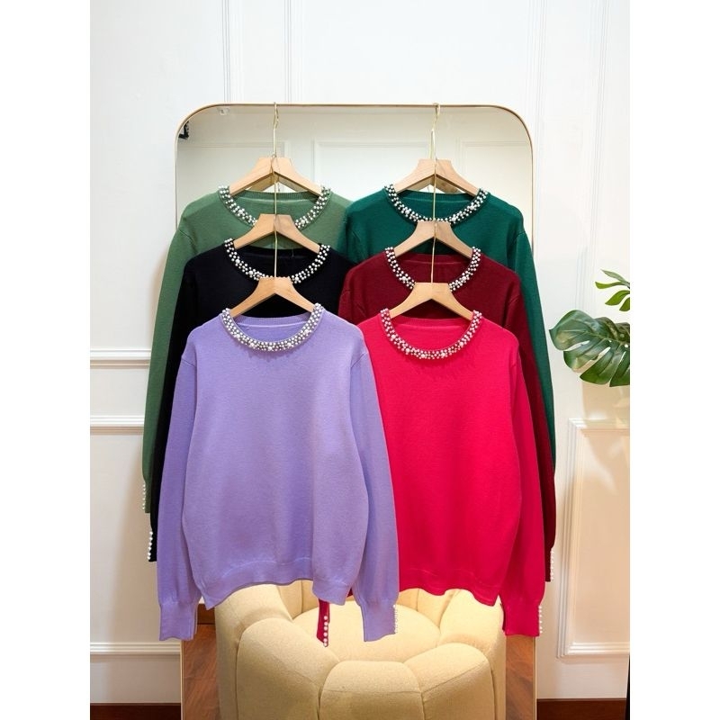 NW- Atasan Rajut Lembut Adem mutiara Inara Sweater Rajut import premium BKK mutiara Soft Knit