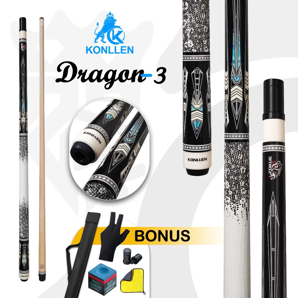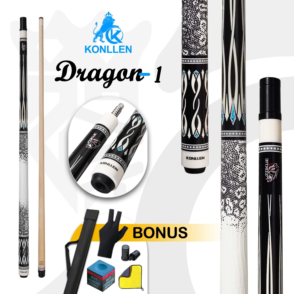 Konllen Dragon Series Maple Play Cue Stick Low Deflection Stik Billiard - Profesional Series