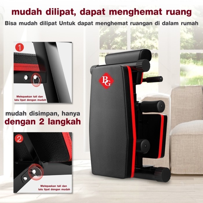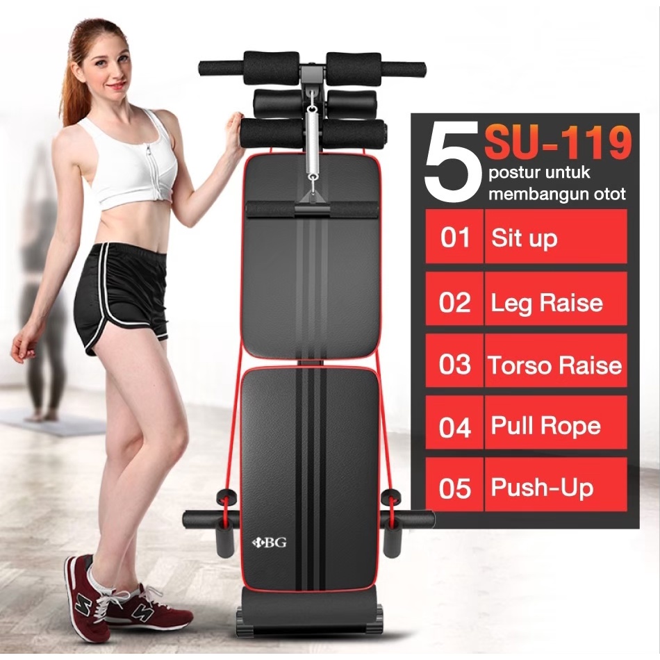 BG SPORT Sit Up Bench 5 IN 1 Alat Fitness Multifungsi Latihan Otot Perut Dumbell Sit Up Board