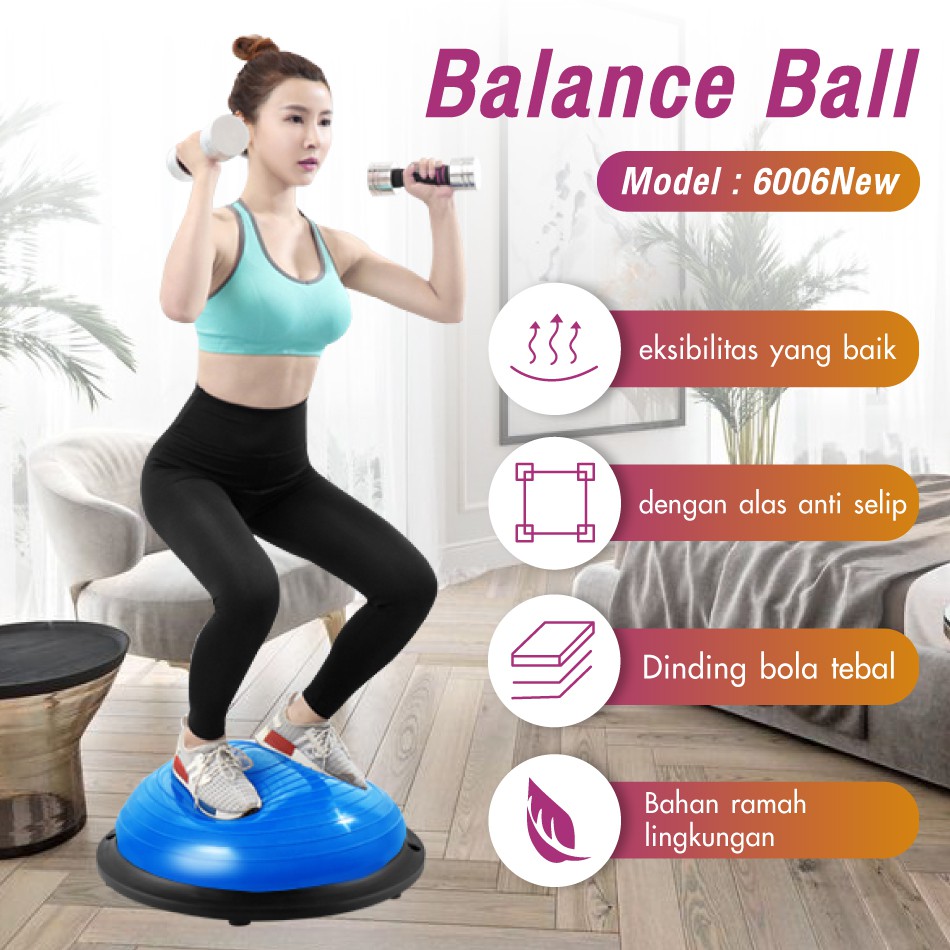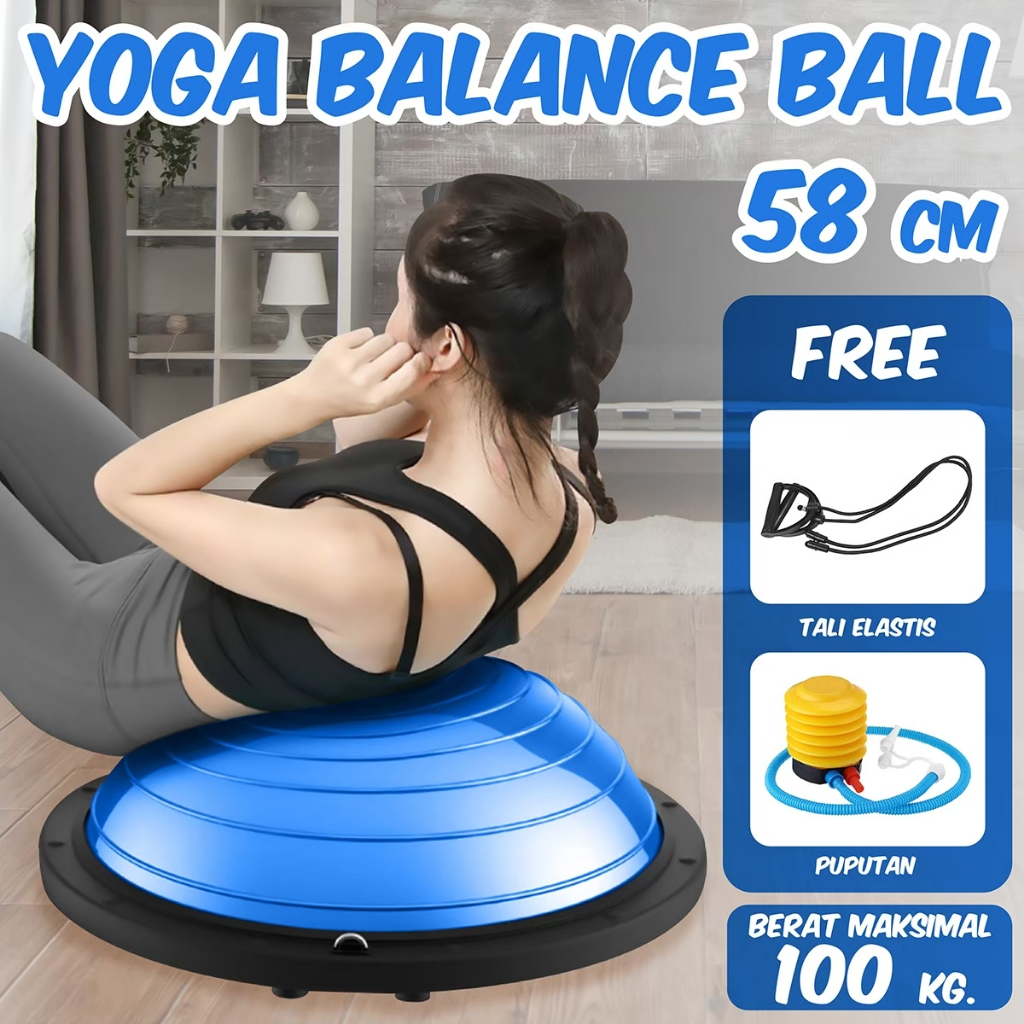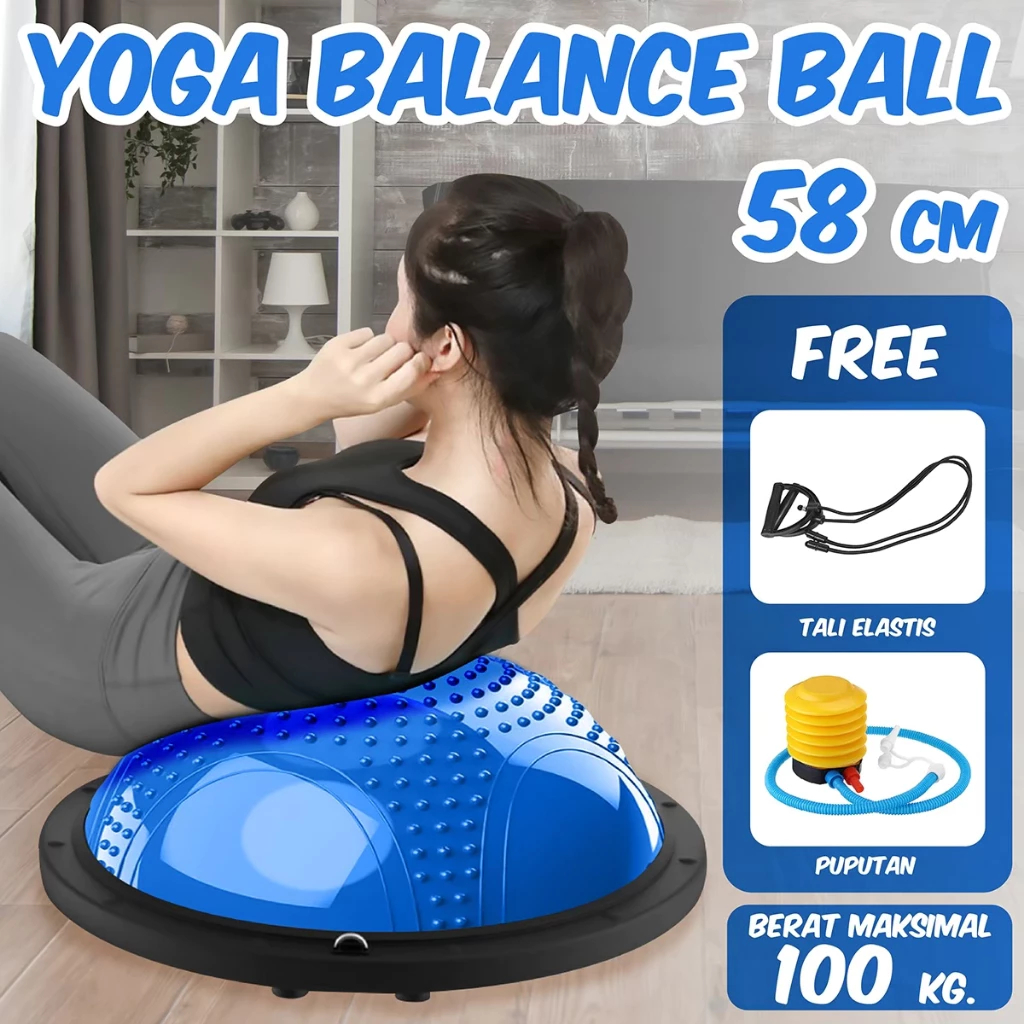 BG SPORT Bosu Ball Blue 46CM & 58CM Balance Step Trainer Bola Yoga Gym Ball FREE PUMP