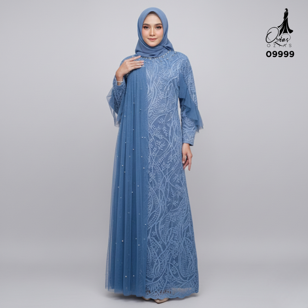 GAMIS OZIAS BROKAT AZURA 09999 LD 105 I Gamis Kondangan Mewah I Gamis Wanita