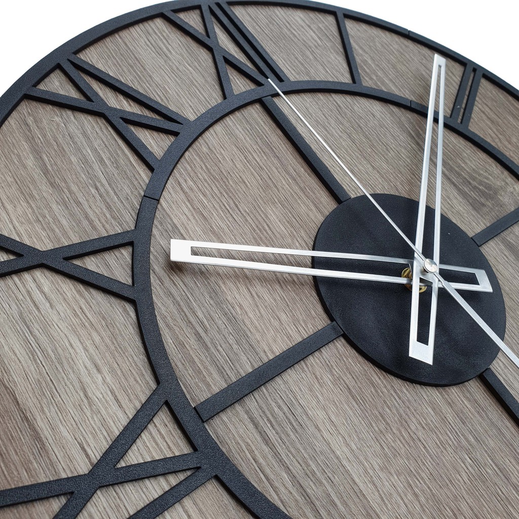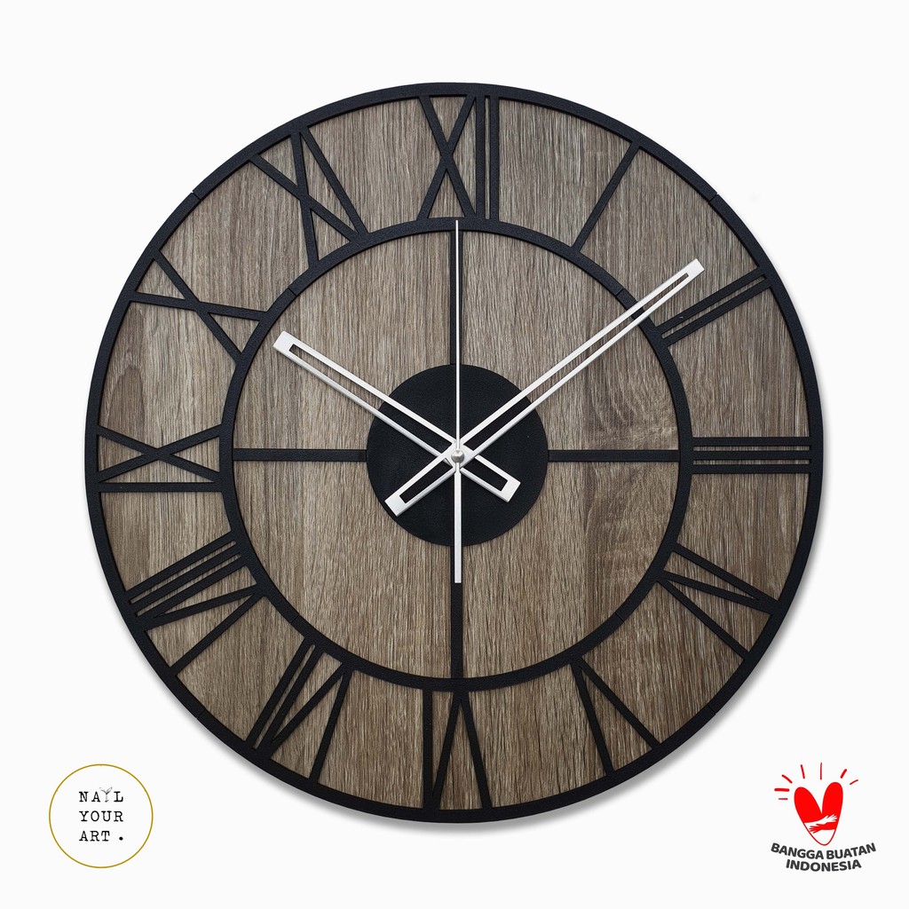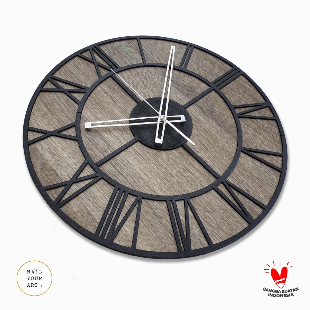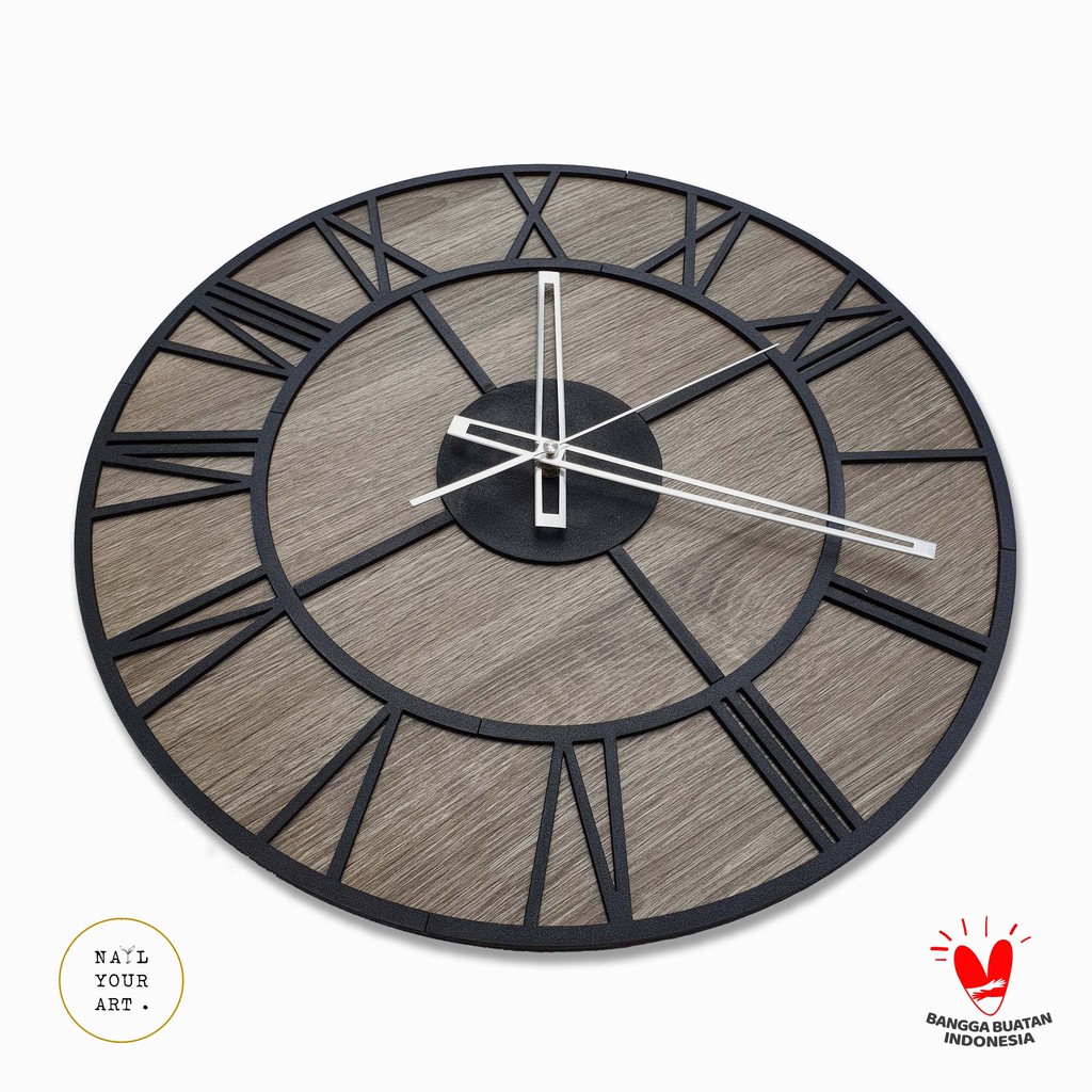 Jam Dinding Besar - OLD TOWN MOTIF - BLEACHED WOOD - Diameter 42 CM
