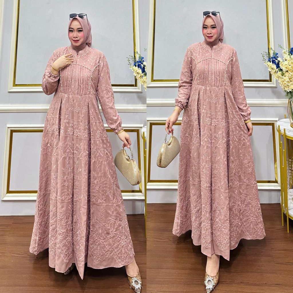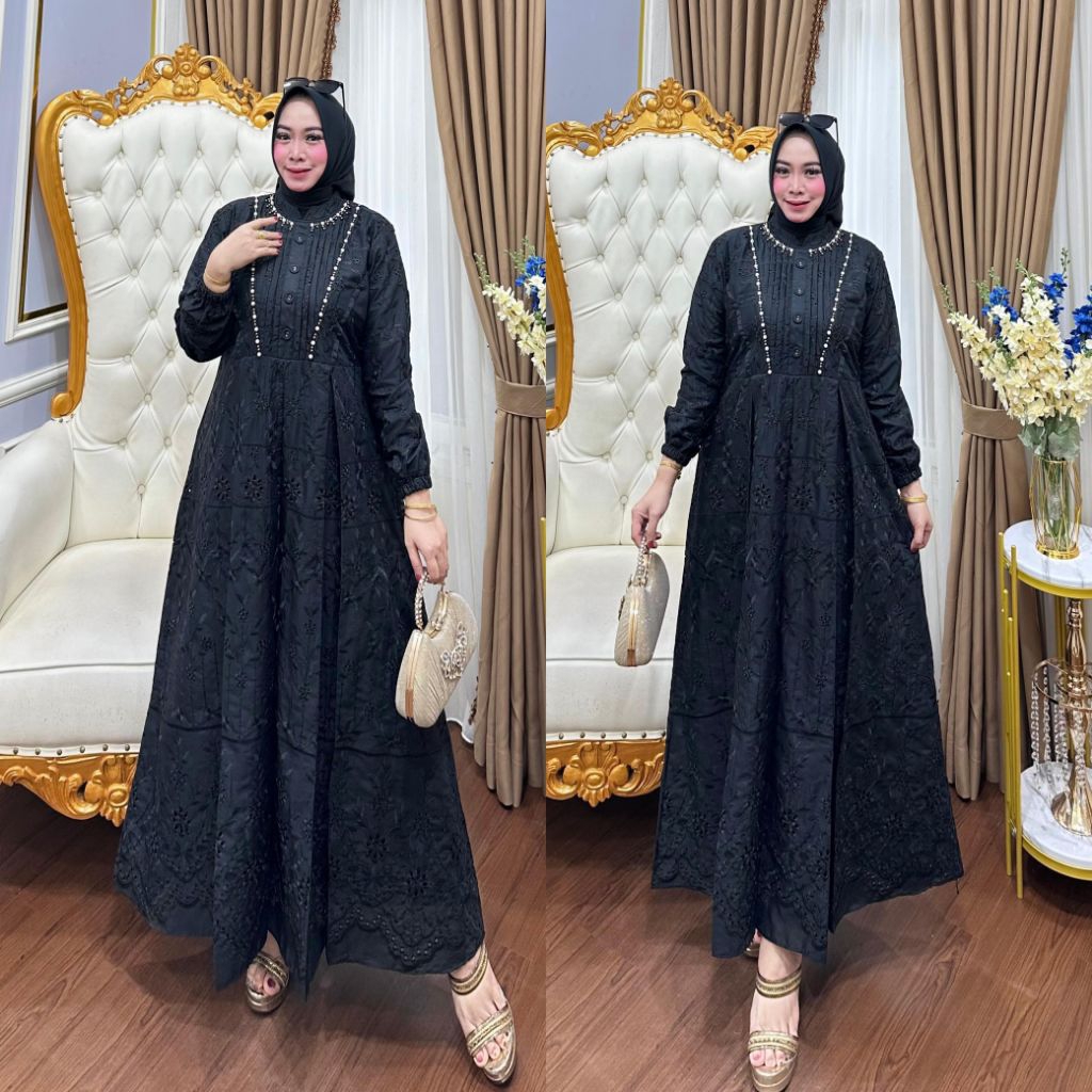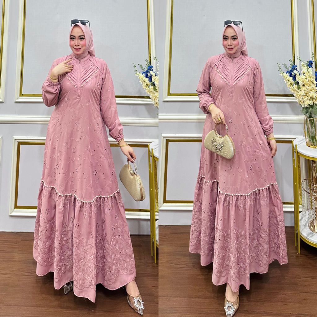 NEW ARRIVAL //RAISA DRESS PREMIUM(KATBOL//KATUN BORDIR (Q DUIK) VARIASI RENDA PAYET MUTIARA (full puring)