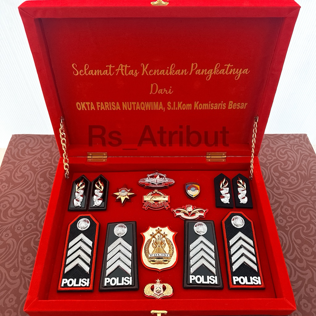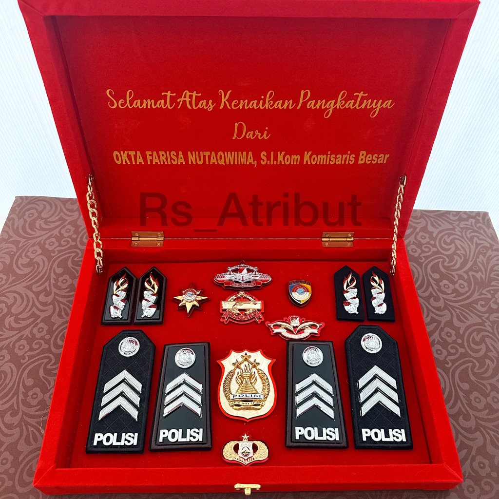 Set Box Pangkat kado kenaikan Bintara pdh pdu Polisi Bripda / Briptu / Brigadir Brigpol / Bripka Polri Premium
