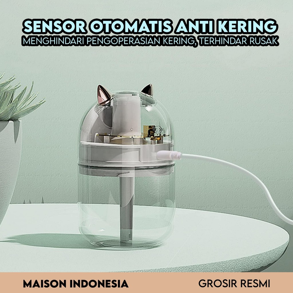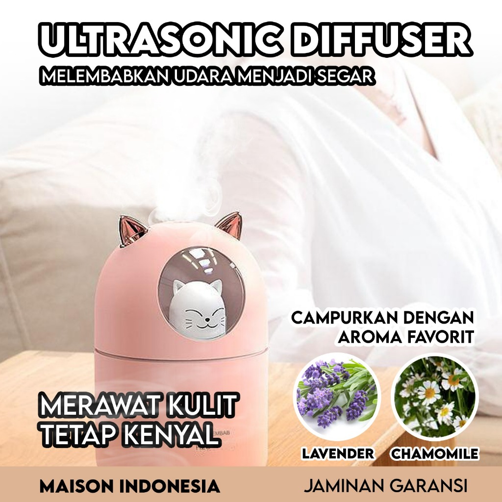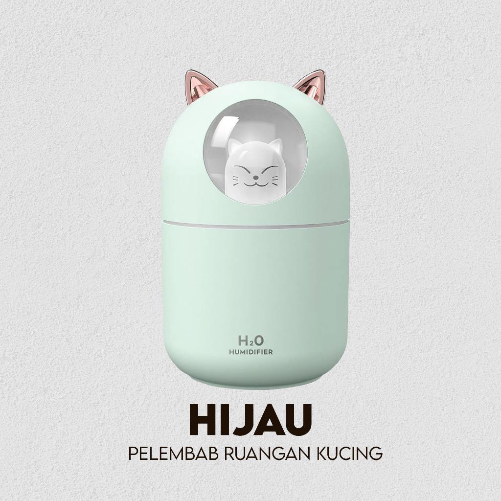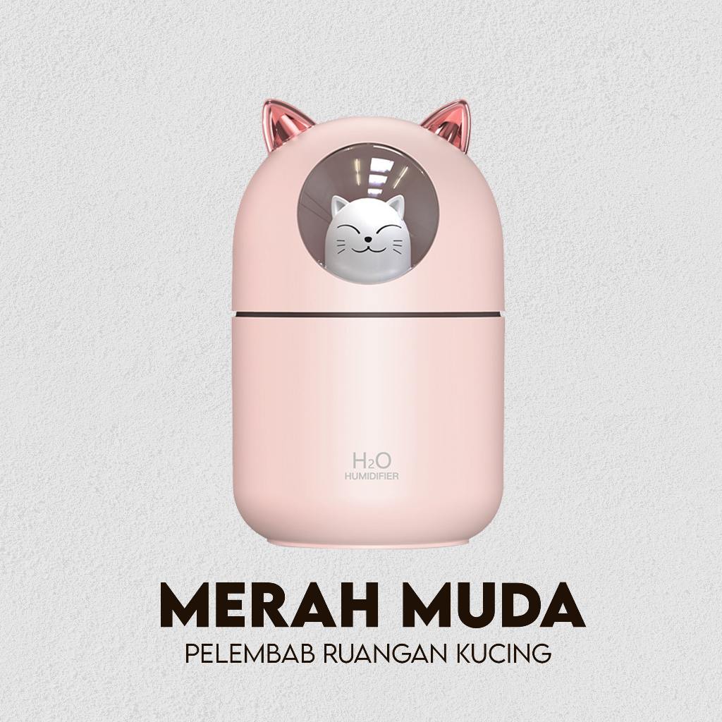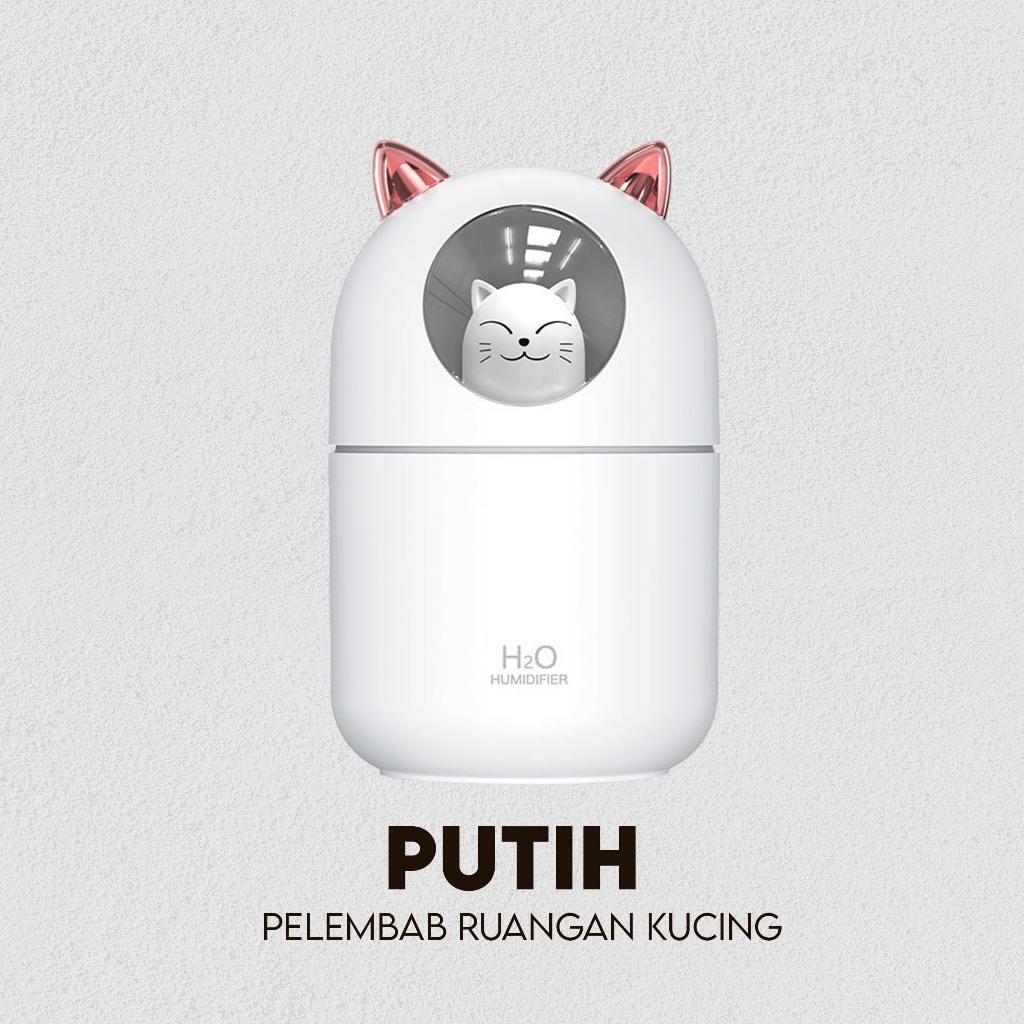 Humidifer Diffuser Air Aroma Ultrasonic Ionizer Pelembab Udara Essential Oil Ukuran Mini Lucu Kucing USB 300ML