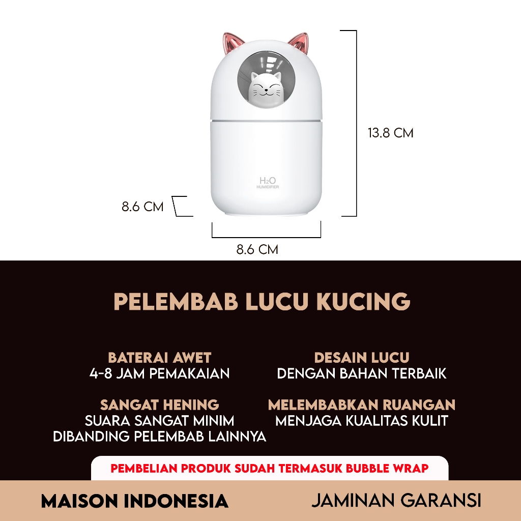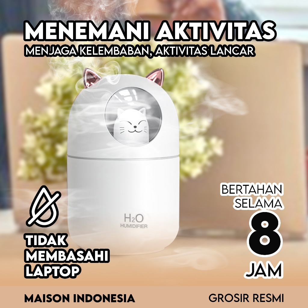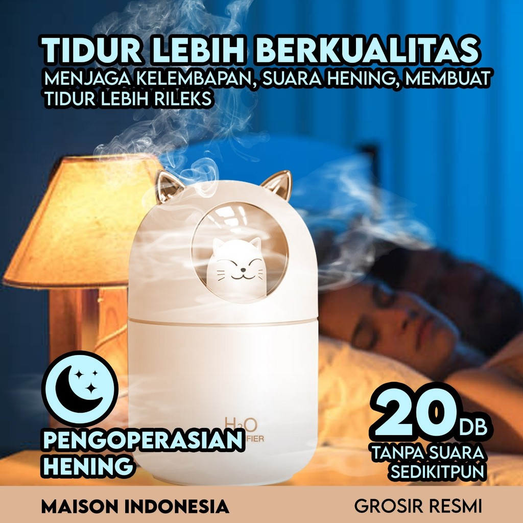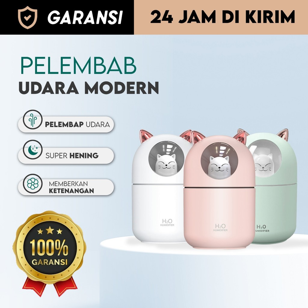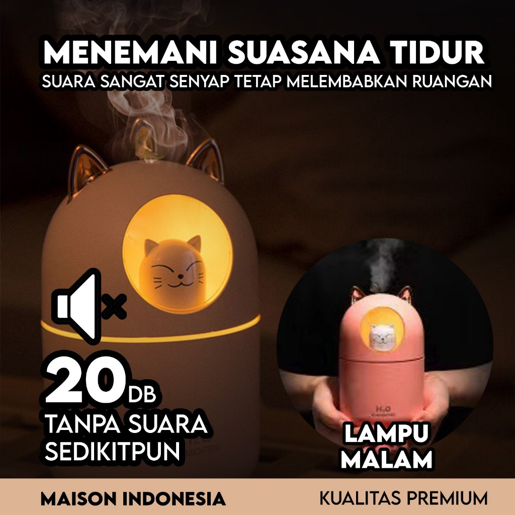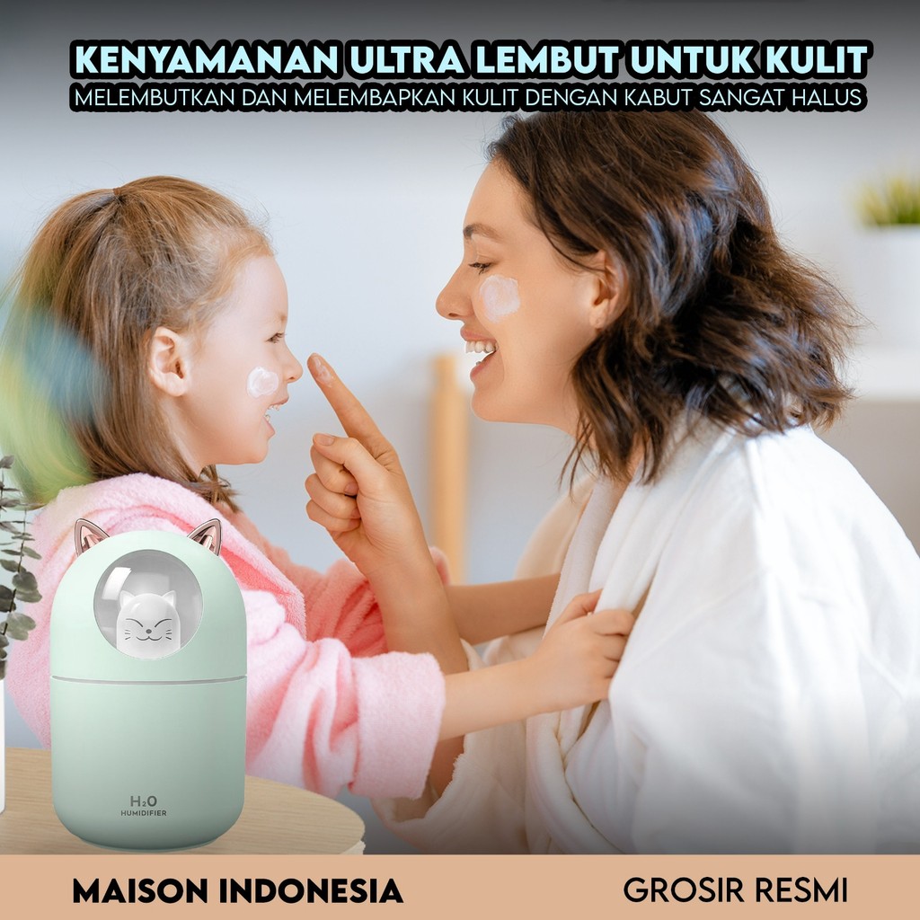 Humidifer Diffuser Air Aroma Ultrasonic Ionizer Pelembab Udara Essential Oil Ukuran Mini Lucu Kucing USB 300ML