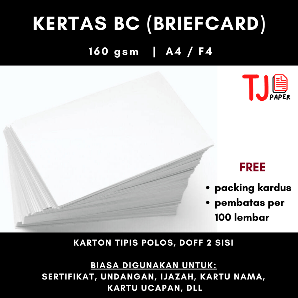 (100 lembar) Kertas BriefCard (BC) / Manila - Sertifikat, Undangan, Ijazah, Kartu Nama, Ucapan
