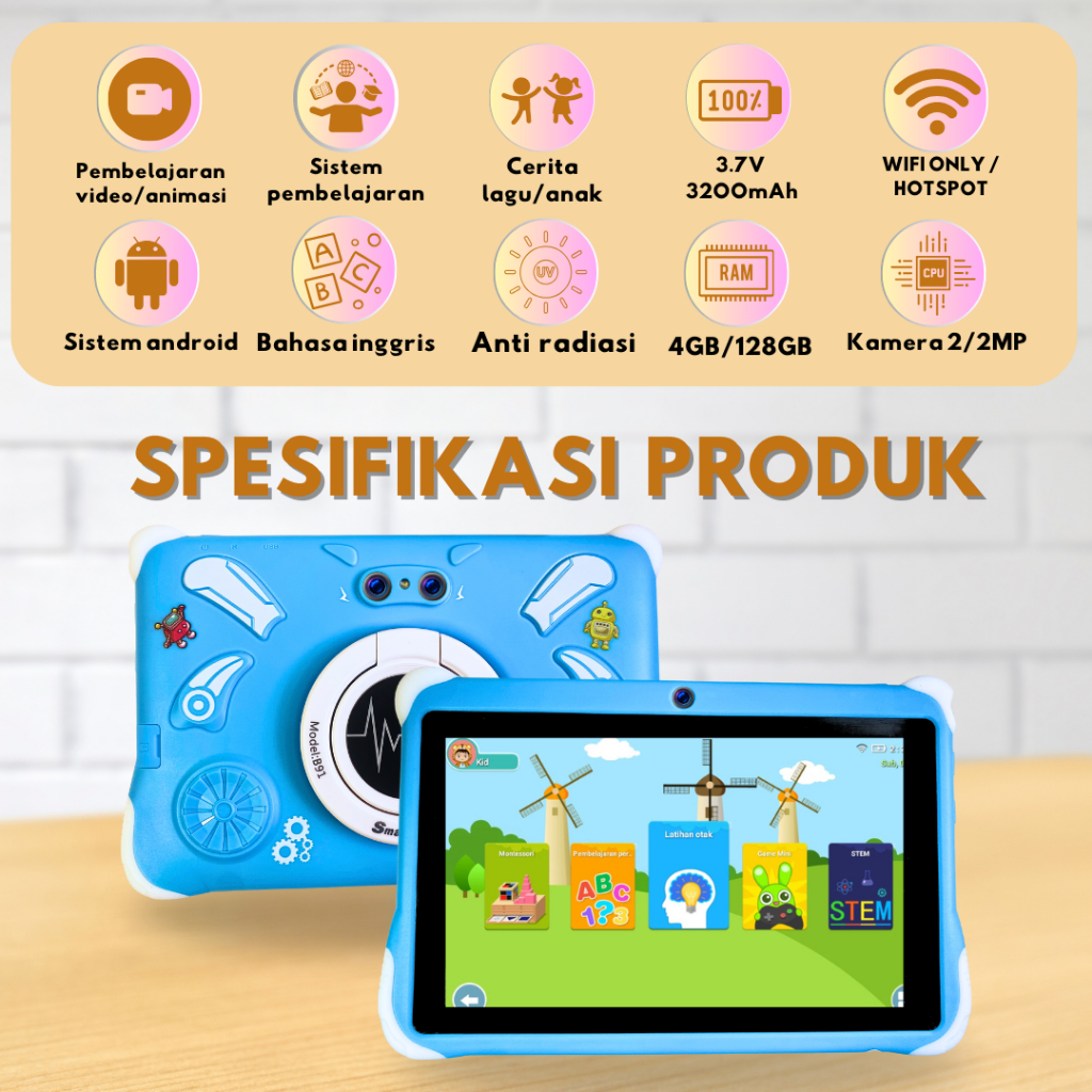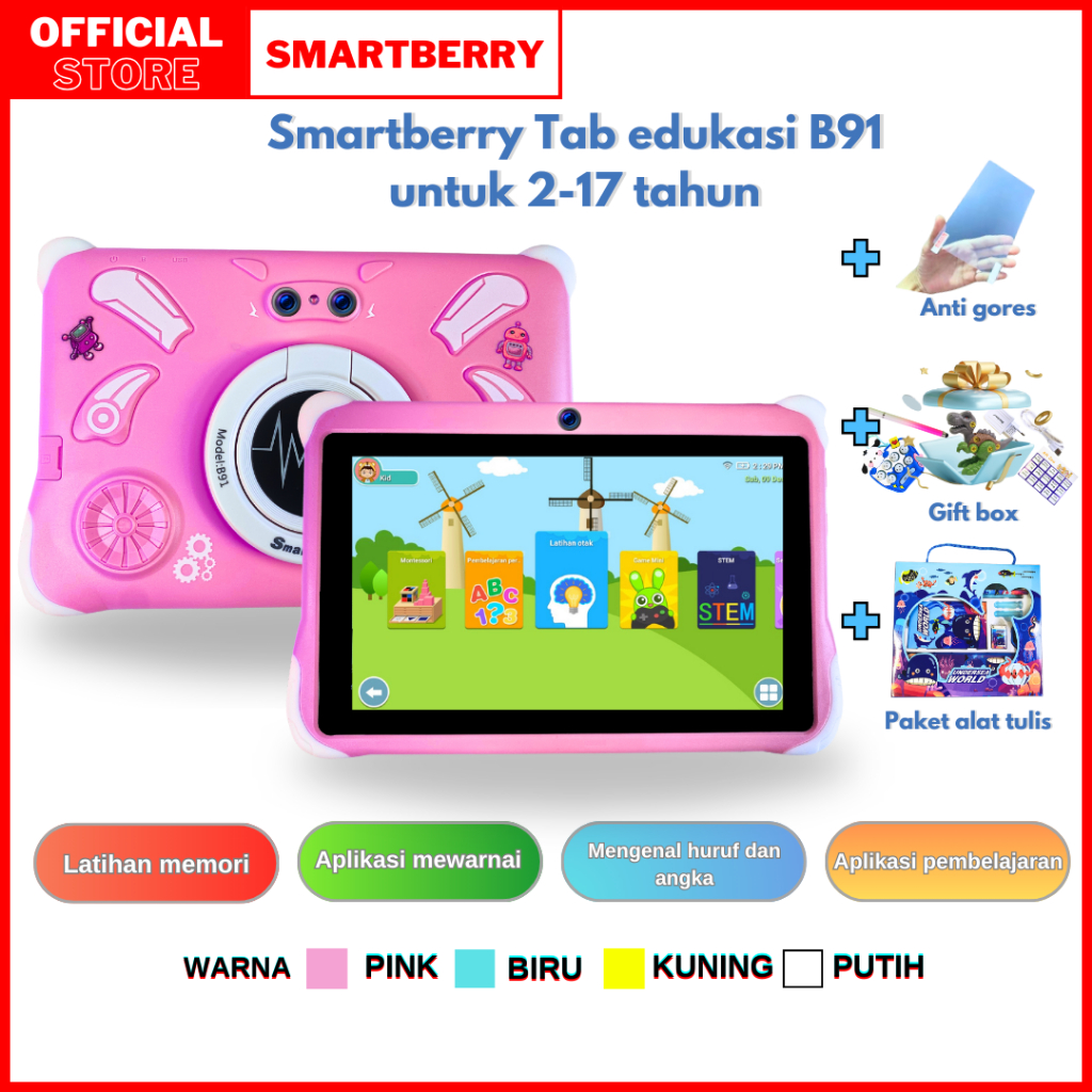 SMARTBERRY SMART2030 KIDS STUDY TAB B85 PRO / B91 / B93 Kids Tablet / Tablet Anak / Tablet 7 Inch / Tablet PC / Tablet Android / 4/128 GB / Kids Gift / Hadiah Anak / Zoom / WhatsApp / Play Store / 2 Camera