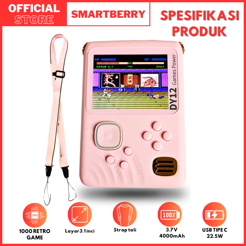 DY12 Game boy Powerbank 4000 mAh / Fast Charging With 1000 Retro Game / Lucu / Pink / Biru / Unik / COD / Diskon / Bermain Game / Pengisi Daya / Game Jadul / Seru / Nostalgia